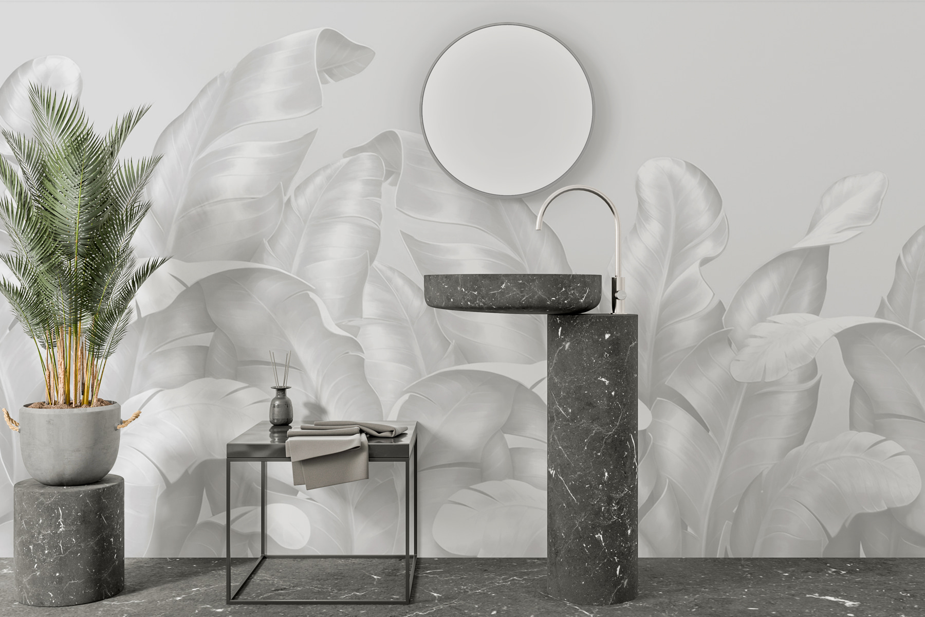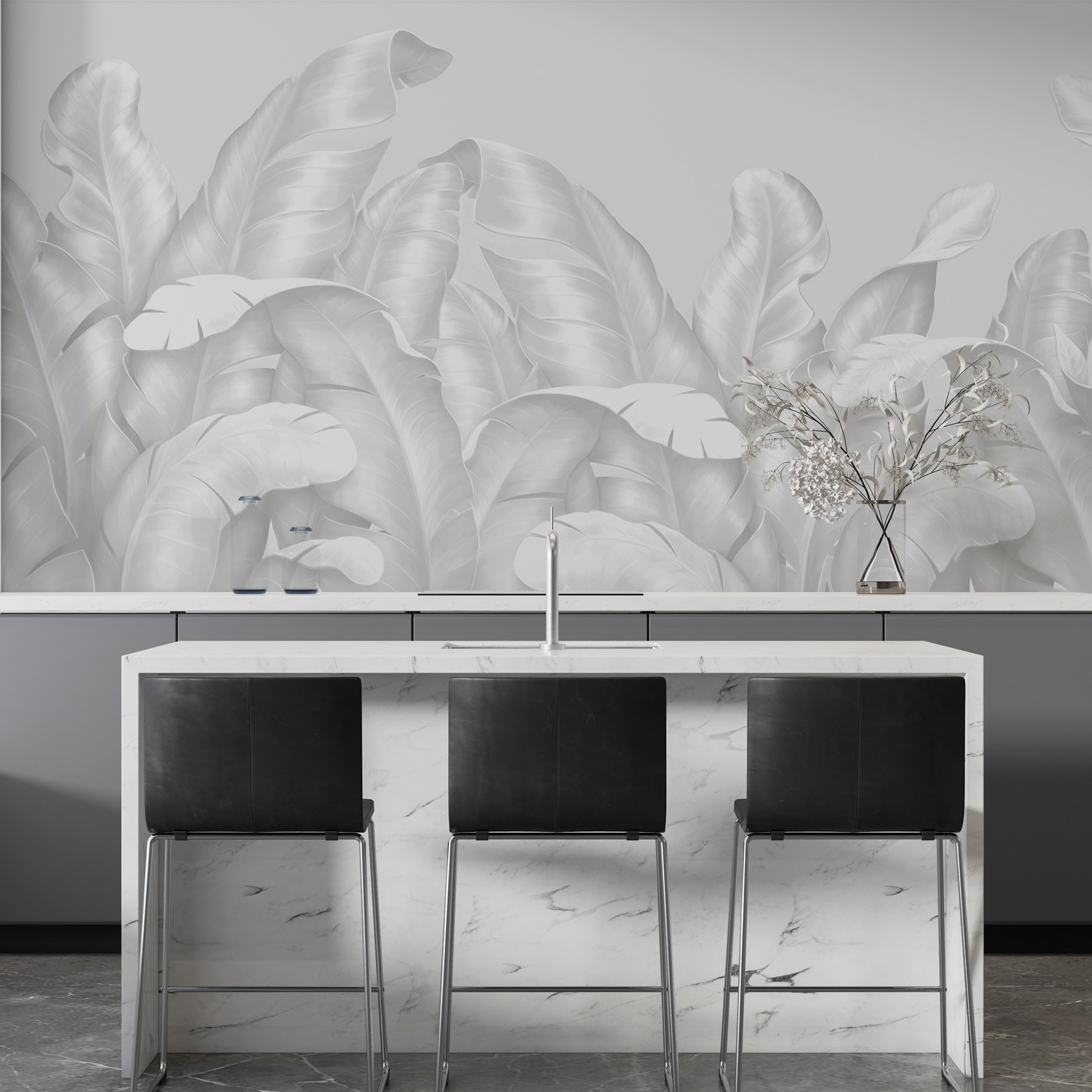 Verwandeln Sie eine schlichte Wand in ein atemberaubendes Meisterwerk mit diesem Wandbild mit elegant gestalteten Blättern. Es ist, als hätten Sie einen Dschungel direkt in Ihrem gemütlichen Raum, ohne Gießkanne und lästige Käfer. Die zarten Blätter schaffen eine luftige Atmosphäre, die jeden Raum frisch und einladend wirken lässt. Stellen Sie sich vor, wie Sie an Ihrem Kaffee nippen, während Sie sich in den weichen Strukturen dieses Designs sonnen, oder stellen Sie sich vor, wie Ihre Freunde einen Platz einnehmen, um Ihren fabelhaften Geschmack zu bewundern. Der sanfte Look dieses Wandbildes passt zu jedem Einrichtungsstil, fügt sich mühelos ein und hebt sich gleichzeitig ab. Ein echter Gewinn für beide Seiten!