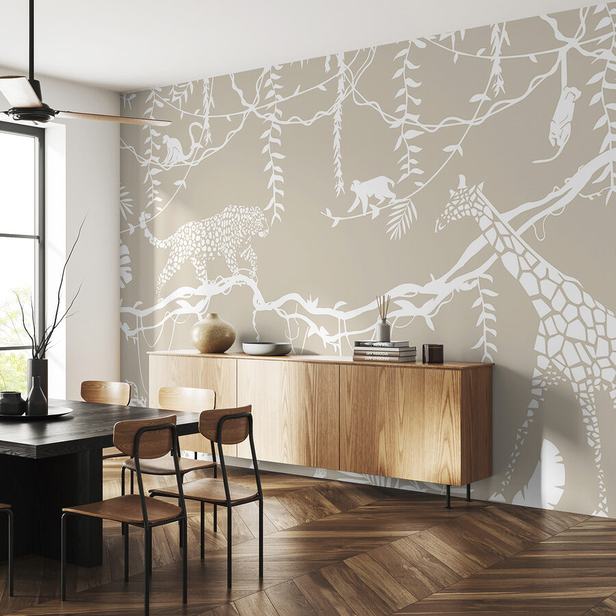 Stellen Sie sich vor, Sie betreten ein Dschungel-Wunderland direkt in Ihrem eigenen Zuhause – das ist es, was Sie mit dieser Fototapete “White Spotted Cheetah on a Branch” bekommen! Es ist die coolste Mischung aus Abenteuer und Ruhe. Stellen Sie sich einen anmutigen Geparden vor, der lässig auf einem Ast inmitten üppiger Dschungelatmosphäre spazieren geht. Perfekt, um Ihrem Raum einen Hauch von Wildnis zu verleihen, egal ob es sich um das Kinderzimmer oder Ihren stilvollen Wohnbereich handelt. Dank der neutralen weißen und beigen Farbpalette passt sie überall hin, ohne zu stören. Manchmal ertappt man sich sogar dabei, wie man davon träumt, auf die Äste zu klettern und den Geparden auf seiner endlosen Safari zu begleiten – keine schlechte mentale Flucht an einem hektischen Tag, oder? Spüren Sie, wie die Ruhe des Dschungels den Raum durchdringt. Es ist mehr als nur eine Tapete, es ist eine ganze Stimmung.