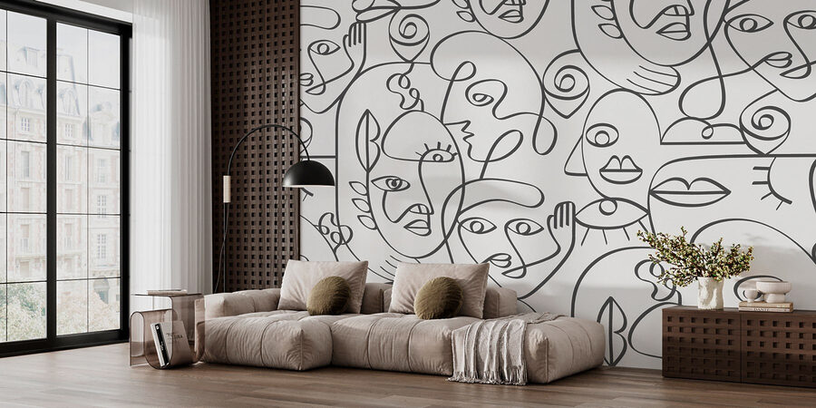Verwandeln Sie jeden Raum in einen Gesprächsanlass mit dieser skurrilen Fototapete, die eine verspielte Mischung aus schwarzen und weißen Gesichtern zeigt. Es ist, als würde man eine abstrakte Kunstgalerie betreten, direkt in Ihrem Zuhause. Jeder Gesichtsausdruck scheint seine eigene Geschichte zu erzählen und strahlt eine energiegeladene Stimmung aus, der man sich nur schwer entziehen kann. Stellen Sie sich vor, Ihre Gäste bleiben stehen, um dieses einzigartige Design zu bewundern, während Sie Ihren Kaffee schlürfen und lässig mit Ihrer stilvollen Dekorationswahl prahlen. Es eignet sich perfekt für ein Wohnzimmer oder sogar eine gemütliche Sitzecke und bringt ein lustiges, künstlerisches Flair mit sich, das frisch und einladend wirkt. Lassen Sie sich von diesen Gesichtern zu interessanten Gesprächen anregen!