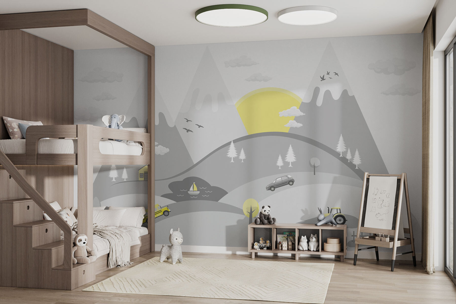 Hätten Sie gedacht, dass ein gelber Schulbus einem Raum so viel Charme verleihen kann? Diese entzückende Fototapete zeigt einen fröhlichen gelben Bus mit den klassischen schwarzen Streifen, der über eine malerische Strecke tuckert, die fast zu perfekt ist. Stellen Sie sich vor, wie dieses Wandbild das Zimmer eines Kindes verschönern könnte – es würde es sofort in eine skurrile Welt voller Abenteuer und Spaß entführen! Der Hintergrund aus Bergen, Bäumen und verspielten Wolken verleiht dem Bild einen beruhigenden Touch und macht es auch für Kinderzimmer perfekt. Die Art von Wandkunst, die die Märchenstunde oder die Spielzeit noch magischer macht. Hängen Sie es auf, und beobachten Sie, wie die Fantasie der Kinder das Steuer übernimmt!