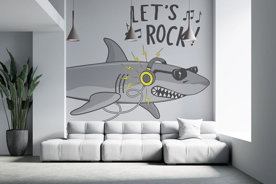 Tauchen Sie ein in ein Meer von Coolness mit dieser skurrilen Fototapete, die einen Cartoon-Hai mit Kopfhörern und Sonnenbrille zeigt. Er ist wie die Unterwasser-Version deines Lieblings-Rockstars, der in jedem Raum für gute Laune sorgt. Stellen Sie sich vor, dass dieses lebendige Stück den Geist eines Teenager-Treffs einfängt, in dem sich Lachen mit frischen Melodien vermischt. Perfekt, um einem Schlafzimmer, einem Spielzimmer oder sogar einem Arbeitszimmer einen Hauch von Spaß zu verleihen – langweilige Wände gehören der Vergangenheit an! Die spielerische Energie dieser Fototapete könnte auch zu ein paar ausgefallenen Tanzbewegungen inspirieren. Wer hätte gedacht, dass ein Hai so ein Trendsetter sein kann?