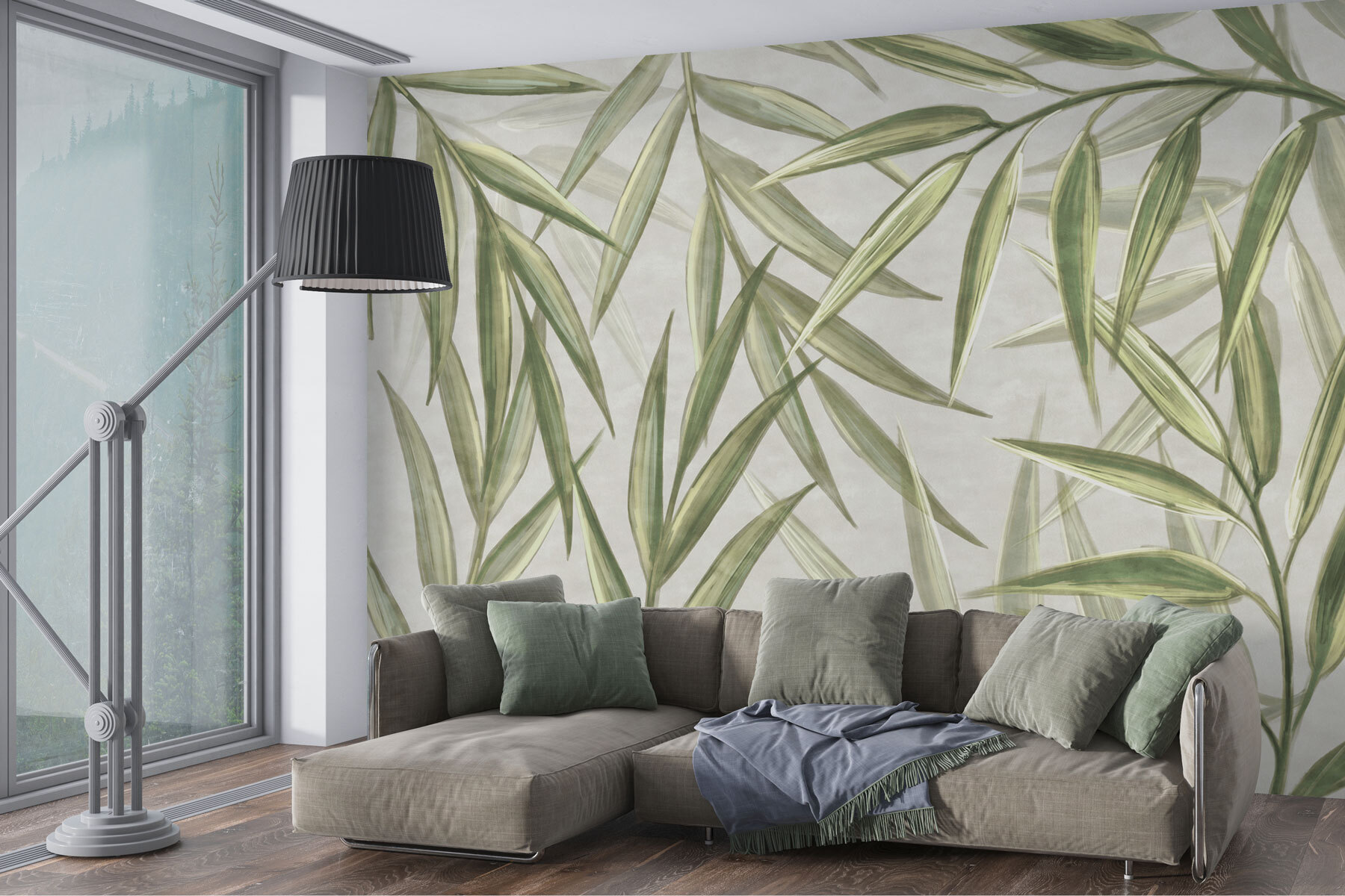 Denken Sie darüber nach, Ihren Raum mit einem Hauch von üppigen, tropischen Vibes zu verwandeln – “Verdant Leaves on Pale Background” ist genau das Richtige! Diese Fototapete lädt mit ihren sanften Grüntönen und dem weichen Hintergrund die heitere Schönheit der Natur ins Haus ein und bietet ein minimalistisches Dschungelgefühl, ohne den Raum zu überwältigen. Stellen Sie sich vor, Sie wachen jeden Morgen mit diesem Bild auf und fühlen sich wie in einem luftigen, friedlichen Refugium. Außerdem passt es zu so vielen Einrichtungsstilen – Dschungel, Tropen, Natur, was immer Sie wollen. Perfekt für einen frischen, beruhigenden Touch.