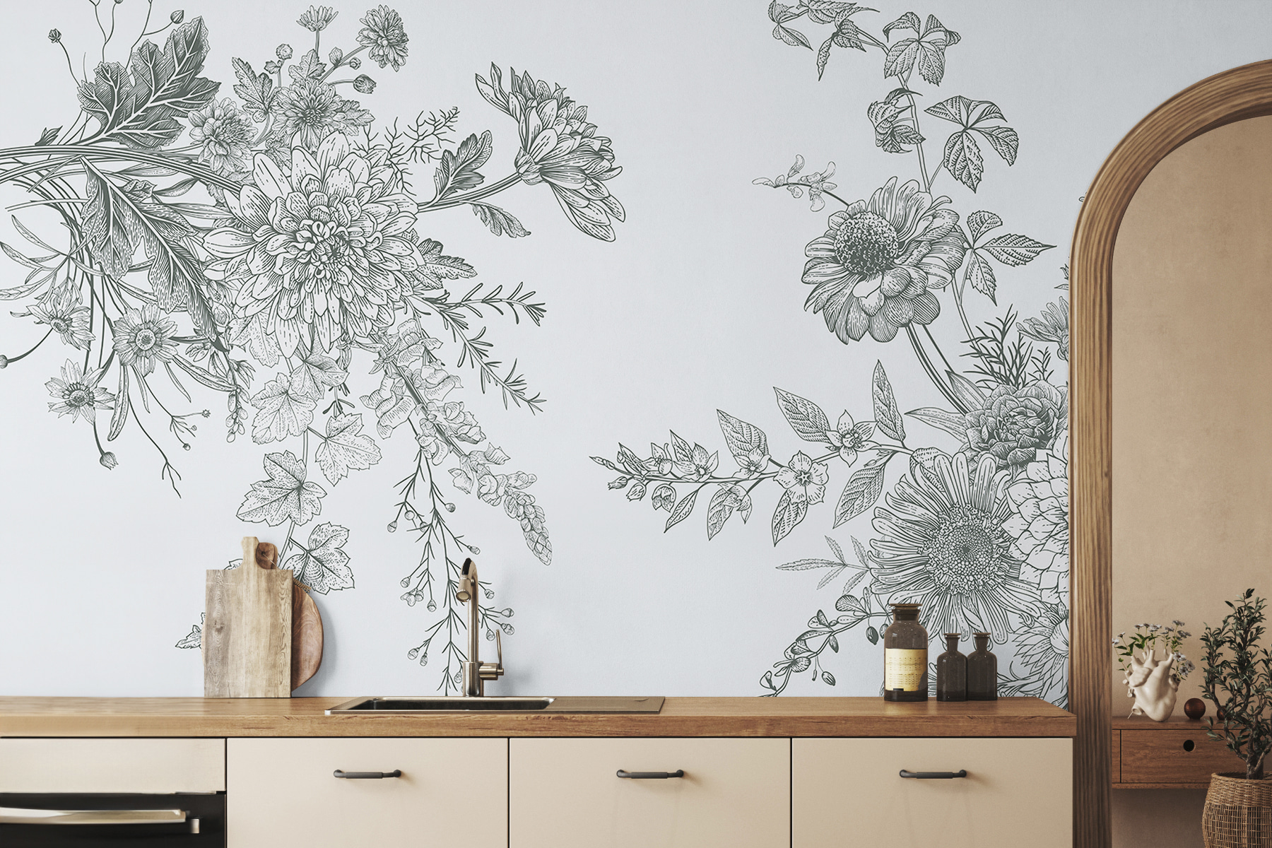 Hallo zusammen! Hast du jemals davon geträumt, deinen eigenen geheimen Garten im Haus zu haben? Dieses Wandbild “Floral Sketch with Intricate Details” könnte die Antwort sein. Stellen Sie sich vor, Sie betreten einen Raum, der mit üppigen Pfingstrosen, skurrilen Frühlingsblumen und einem Hauch von rustikalem Charme geschmückt ist – und das alles ohne einen grünen Daumen in Sicht.