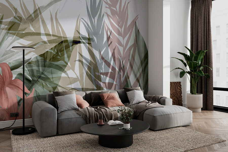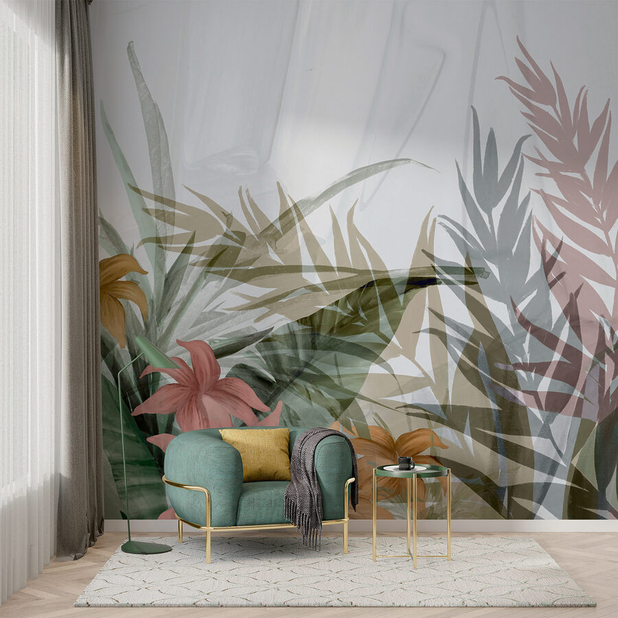 Stellen Sie sich das vor: ein Wandbild, das Ihre Wand in eine heitere Oase verwandelt. Hier kommt unser abstraktes Blumenmuster mit geschichteten Blättern. Jedes Mal, wenn Sie den Raum betreten, ist es wie ein Mini-Urlaub. Diese weichen Schichten von Blättern und Blumen – fast wie eine sanfte Brise, die durch einen tropischen Wald rauscht. Die gedämpften Farben vermischen sich zu einem beruhigenden Tanz, der jedem Raum ein frisches und ruhiges Gefühl verleiht.
