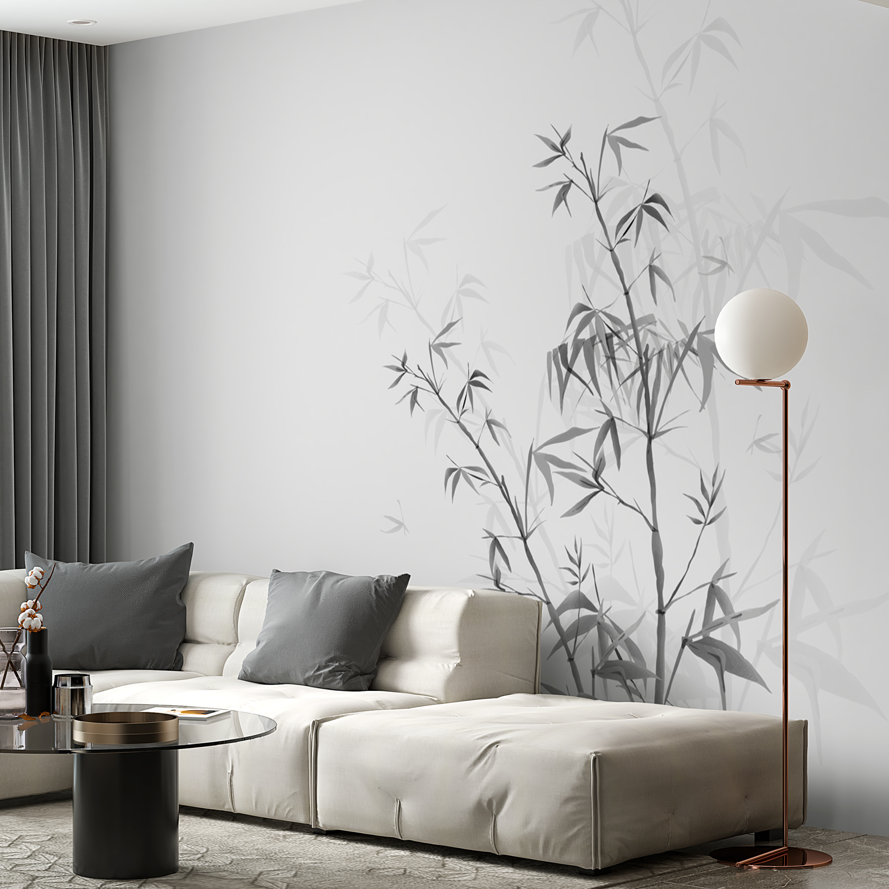 Denken Sie daran, Ihrem Raum eine sanfte Umgestaltung zu geben? Stellen Sie sich das vor: eine Wandmalerei aus zartem Bambus, der sich sanft vor einem weichen Hintergrund wiegt. Es ist perfekt für alle, die einen Hauch von Natur in ihrem Zuhause lieben. Stellen Sie sich vor, Sie kommen nach einem langen Tag nach Hause und spüren die Ruhe eines Bambushains, direkt in Ihrem Wohn- oder Schlafzimmer. Es ist wie eine kleine Flucht, ohne das Haus zu verlassen. Stellen Sie sich vor, wie Sie sich mit einem Buch entspannen, während das subtile, gedämpfte Grün Ruhe um Sie herum flüstert – wie eine sanfte Brise im Wald. Ihr Zimmer fühlt sich fast wie ein Zen-Raum an, nicht wahr? Perfekt, um einen ruhigen, stilvollen Akzent zu setzen. Ideal, um einen Raum zu schaffen, in dem Entspannung und Eleganz nahtlos ineinander übergehen.