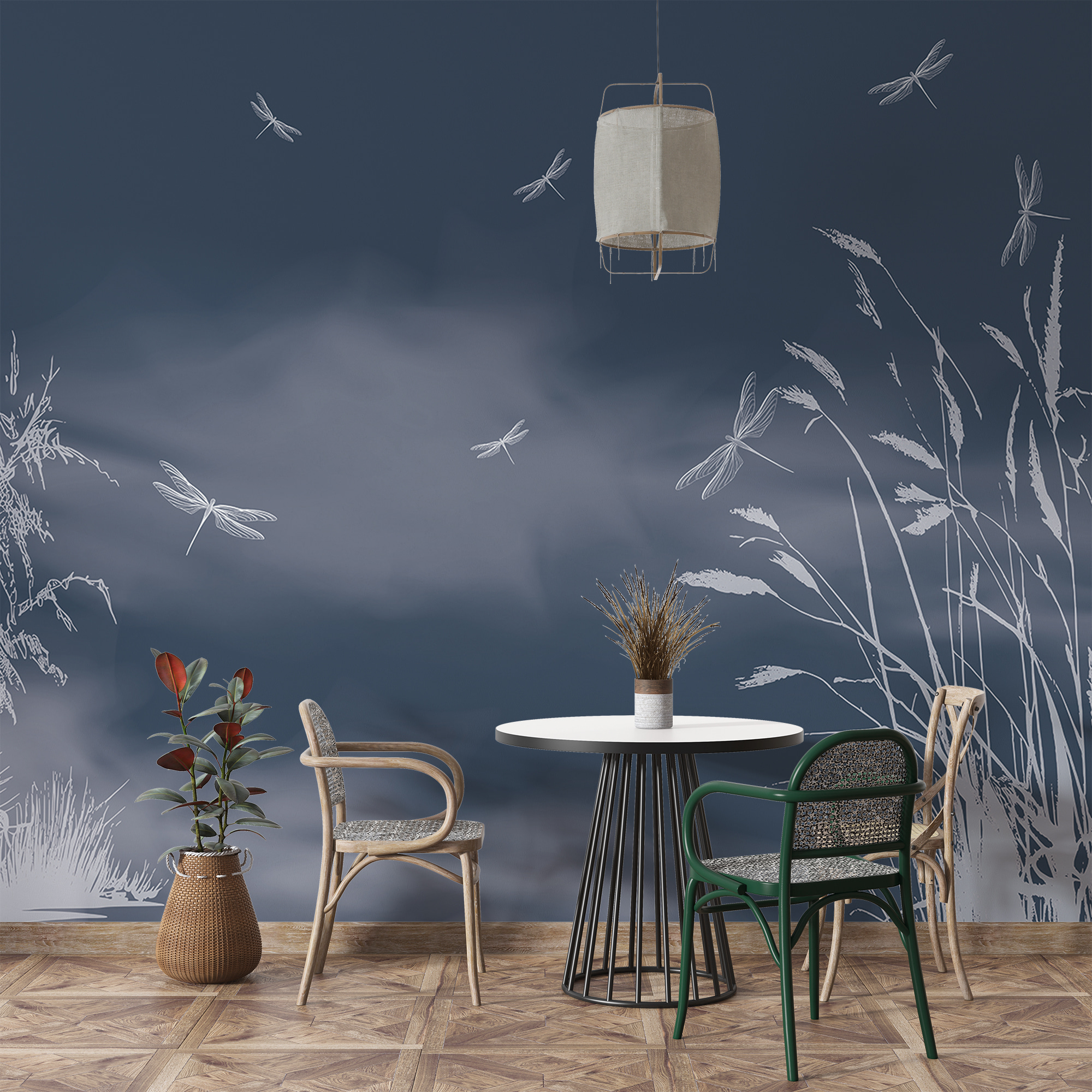 Verwandeln Sie jeden Raum mit dieser bezaubernden Fototapete mit Libellen, die am Himmel tanzen. Es ist, als ob ein kleines Stück Natur direkt in Ihr Zuhause eingeflogen wäre. Stellen Sie sich vor: Sie schlürfen eine Tasse Tee und werden plötzlich auf eine ruhige Wiese versetzt, auf der diese zarten Kreaturen umherflattern und einen Hauch von Laune und Ruhe verbreiten. Die sanften Farben wirken Wunder und schaffen eine gemütliche Atmosphäre, die Entspannung verheißt. Perfekt für eine leere Wand, die schon lange nach etwas Liebe lechzt, oder sogar als lustiger Akzent in einem Kinderzimmer. Stellen Sie sich das Lächeln vor, das es hervorrufen wird!