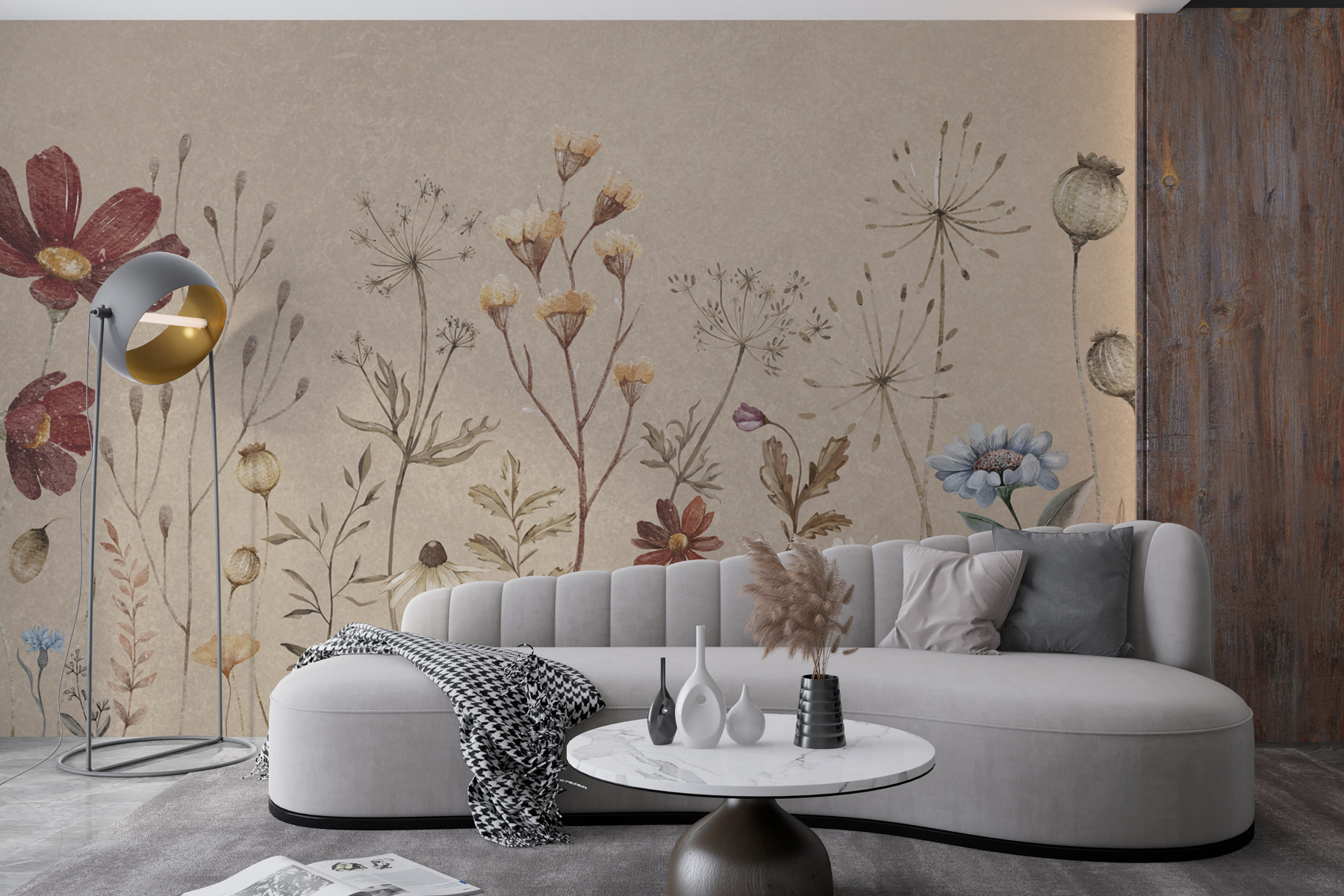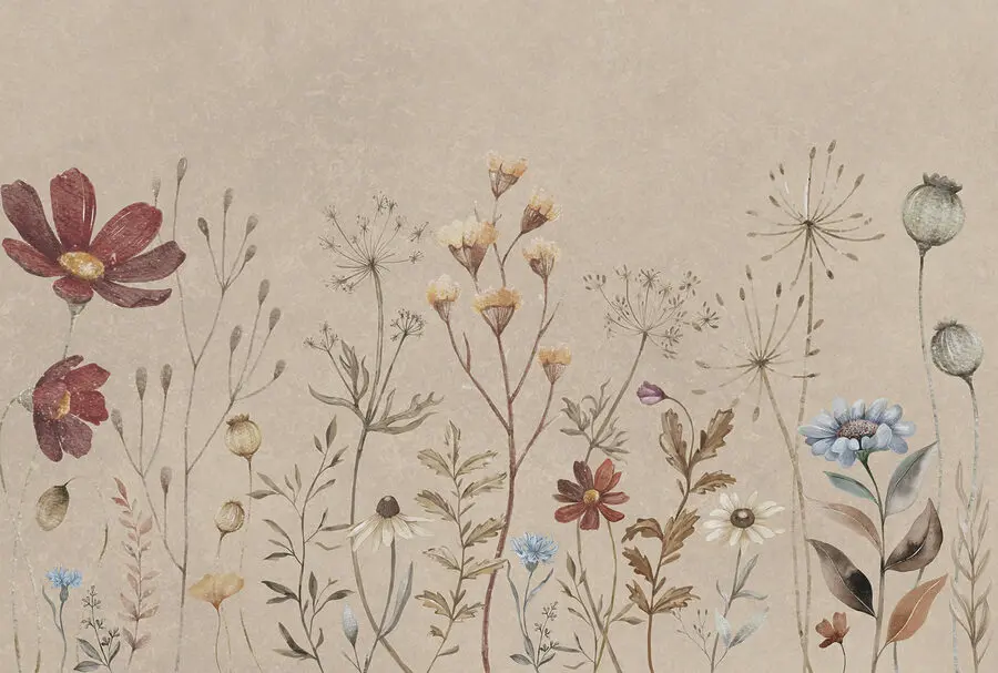 Stellen Sie sich vor, Sie betreten Ihr Zimmer und haben sofort das Gefühl, in einem verträumten Garten zu sein. Das ist es, was die Fototapete “Whimsical Garden of Delicate Blooms” bewirkt. Es verwandelt jeden Raum in eine heitere, blühende Oase. Dieses Wandbild ist wie eine sanfte Umarmung für Ihre Wände und perfekt für Naturliebhaber oder alle, die einen Hauch von Laune brauchen. Die erdigen Töne und die zarten Wildblumen verleihen dem Bild einen beruhigenden und zugleich charmanten Charakter. Es eignet sich ideal für Wohn- und Schlafzimmer oder sogar für eine gemütliche Ecke, in der Sie Ihren Morgenkaffee schlürfen. Es ist die Art von Dekoration, die Ruhe ausstrahlt und Sie jedes Mal zum Lächeln bringt, wenn Sie es sehen.