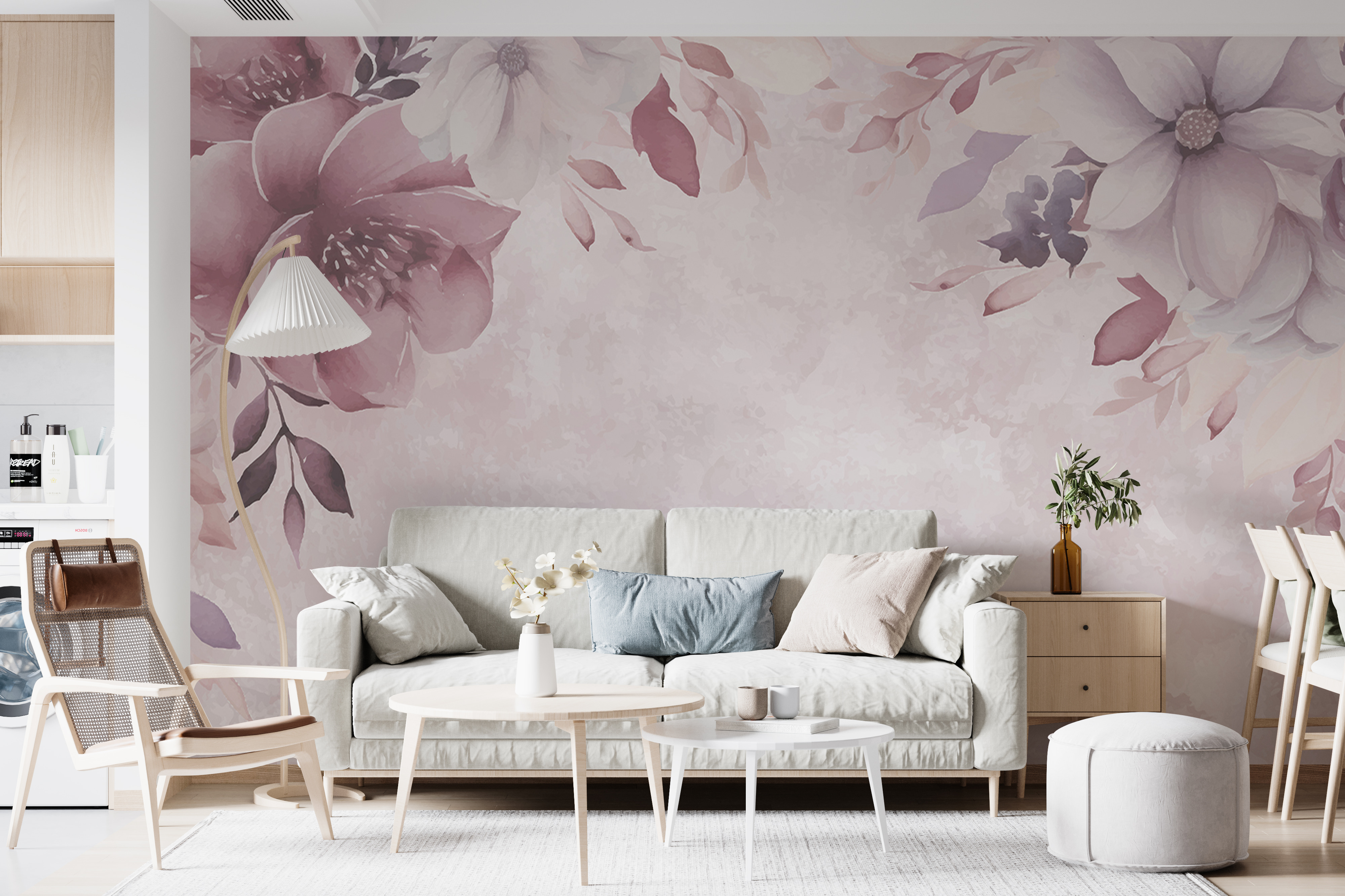 Sehen Sie sich diese atemberaubende Fototapete an: “Pastellfarbene florale Eleganz auf dem Display”. Perfekt, wenn Sie einen Hauch von Laune in Ihrer Einrichtung lieben. Stellen Sie sich vor, Sie betreten einen Raum voller verträumter Pfingstrosen in Aquarellfarben und zarter Blumen in sanftem Rosa und Lila. Es ist, als würde man in ein Märchen eintauchen, oder?