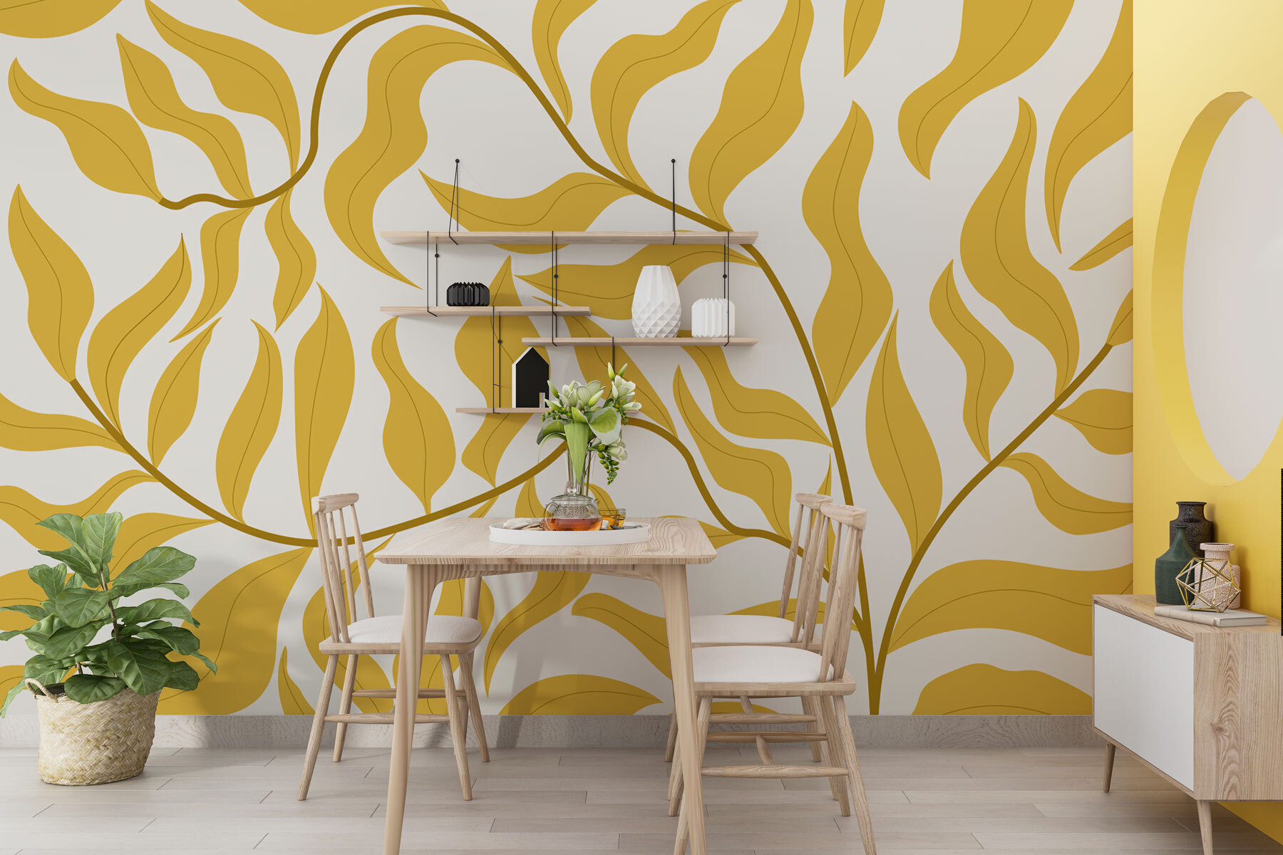 Stellen Sie sich vor, Sie betreten einen Raum und werden von einer Explosion sonniger Blätter begrüßt, die auf einer makellosen weißen Wand tanzen. Diese Fototapete mit ihrem modernen Flair verbindet einen frischen Designer-Touch mit der organischen Schönheit des Laubes. Es ist, als ob Sie ein Stück moderne Kunst und die Natur in Ihren Wohnraum einladen würden. Die warmen gelben Blätter haben die perfekte sanfte Ausstrahlung, die nicht nach Aufmerksamkeit schreit, sondern die Aura des Raumes selbstbewusst unterstreicht. Stellen Sie es sich in Ihrem Arbeitszimmer vor, als sofortige Aufwärmung für eine Leseecke, oder sogar im Badezimmer für diesen Spa-Charme. Er flüstert Chic, ohne sich zu sehr anzustrengen.