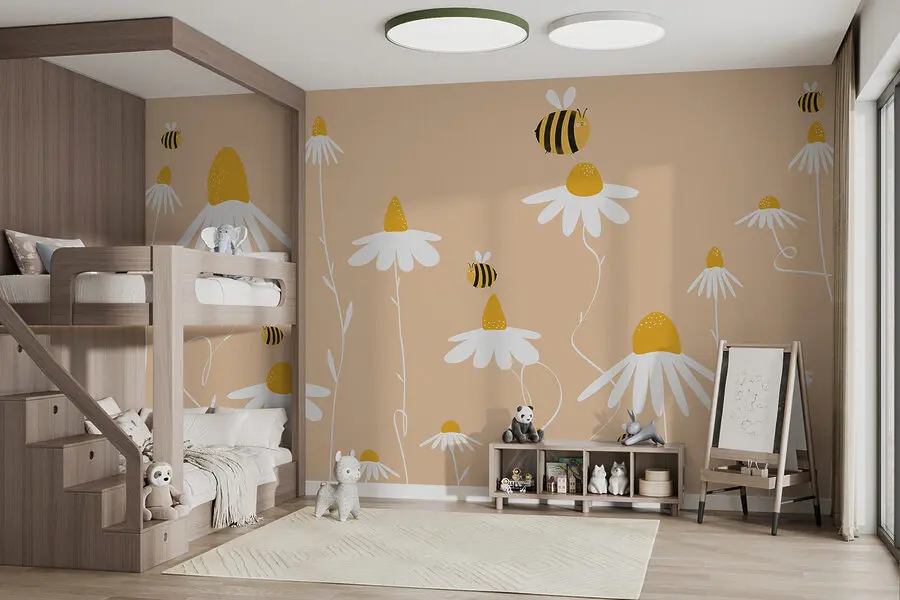 Und diese freundlichen kleinen Bienen, die umherschwirren – zu niedlich, nicht wahr? Sie verleihen dem Bild eine ganz besondere Note, die sich lebendig und voller Energie anfühlt. Egal, ob Sie jung oder jung geblieben sind, dieses Wandbild hat den unvergleichlichen Charme, der jeden Raum von “langweilig” in “wunderbar” verwandelt.