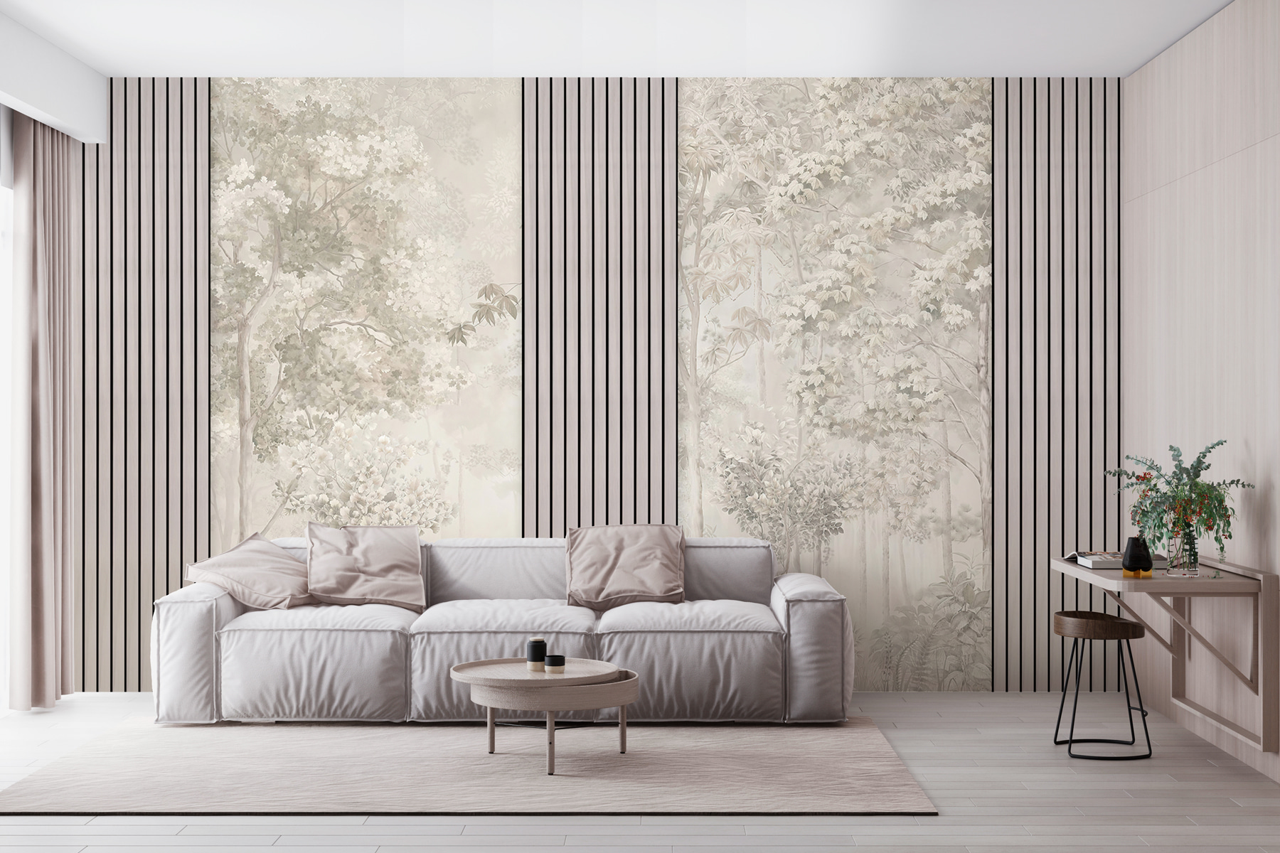 Mit diesem Wandbild mit anmutigen Bäumen und zarten Blumen verwandeln Sie jeden Raum in eine ruhige Oase. Stellen Sie sich vor, wie Sie sich in der sanften Atmosphäre sonnen, die es schafft, als ob ein friedlicher Hain direkt in Ihren Raum gepflanzt worden wäre. Die sanften Farbtöne und das verträumte Design vermitteln ein Gefühl der Ruhe, das perfekt ist, um nach einem langen Tag zu entspannen oder um Gespräche bei Zusammenkünften anzuregen. Ob in einer gemütlichen Leseecke oder einem lebhaften Wohnzimmer, dieses Wandbild verleiht Wärme und Charakter. Wie eine sanfte Brise bringt es frische Energie, ohne dabei zu übertreiben – denn wer liebt nicht ein wenig Natur in seinem Zimmer?