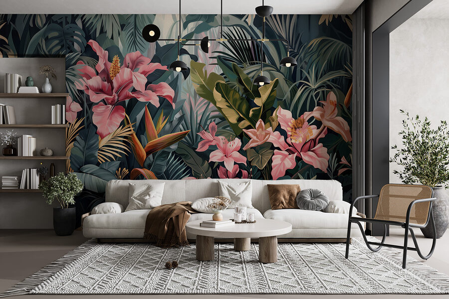 Stellen Sie sich vor, Sie kommen nach einem langen Tag nach Hause, ziehen Ihre Schuhe aus und werden von einem üppigen Dschungel direkt in Ihrem Wohnzimmer begrüßt. Das ist genau das, was dieses lebendige Wandbild bietet. Es ist, als würde man in ein tropisches Paradies eintauchen – mit kräftigen, rosafarbenen Blüten und sattem Grün – ohne das Haus zu verlassen! Perfekt, um jedem Raum einen großen Wow-Faktor zu verleihen, sei es das Wohnzimmer, das Schlafzimmer oder sogar ein schickes Heimbüro.