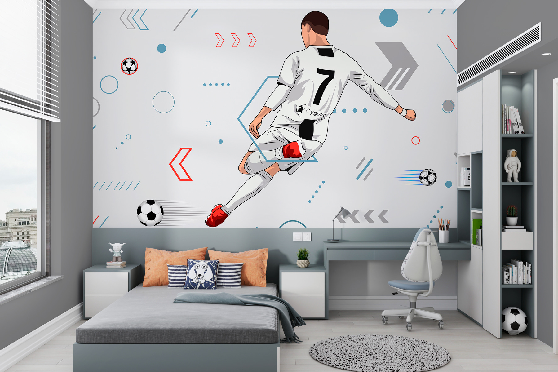 Stellen Sie sich vor, Sie betreten Ihr Zimmer und werden von dieser epischen Wandmalerei eines Fußballspielers begrüßt, der mit aller Kraft einen Ball schießt. Man spürt förmlich, wie die Energie und Leidenschaft von der Wand springt! Perfekt für jeden Fußballfan, egal ob Sie einen zukünftigen Messi haben oder jemanden, der das schöne Spiel einfach liebt. Mit dynamischen Linien und kräftigen Farben setzt dieses Wandbild ein Zeichen – es ist, als hätte man ein Mini-Stadion direkt in seinem Zuhause. Ideal für ein Kinderzimmer, eine Männerhöhle oder sogar Ihr Büro, wenn Sie sich ein bisschen abenteuerlich fühlen. Jedes Mal, wenn Sie es betrachten, werden Sie sich den Nervenkitzel des Spiels vorstellen und sich vielleicht sogar ein wenig inspiriert fühlen, Ihren Tag mit demselben feurigen Geist zu beginnen. Es ist nicht nur eine Dekoration, es ist ein Ausbruch von Aufregung an Ihrer Wand!