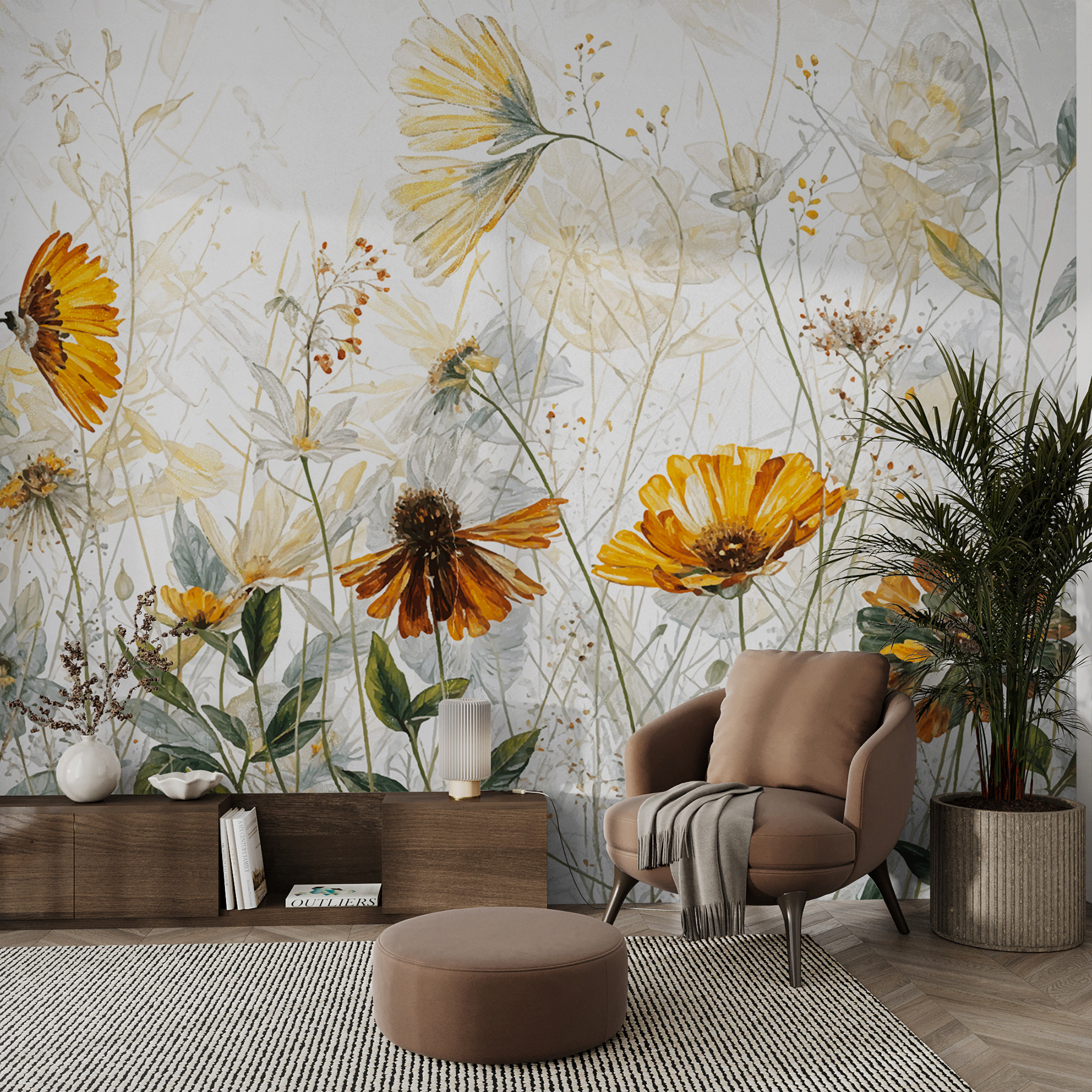 Stellen Sie sich vor, Sie wachen jeden Tag mit einer Wiese voller Wildblumen auf – das ist es, was diese Fototapete “Wildflowers Dancing in the Breeze” in Ihren Raum bringt. Es ist, als ob Ihre Wände Sie mit einer sanften Umarmung der Natur empfangen würden. Die sanften Farbtöne und das zarte Aquarelldesign vermitteln das Gefühl, als würden sich die Blumen direkt vor Ihren Augen wiegen – beruhigend und wunderschön. Perfekt, um Ihrem Wohnzimmer einen Hauch von Laune zu verleihen oder Ihre Leseecke in eine heitere Stimmung zu versetzen. Es hat diese magische Art, Sie zu entspannen und zu inspirieren, wie ein Hauch von frischer Luft in Ihrem Zimmer.