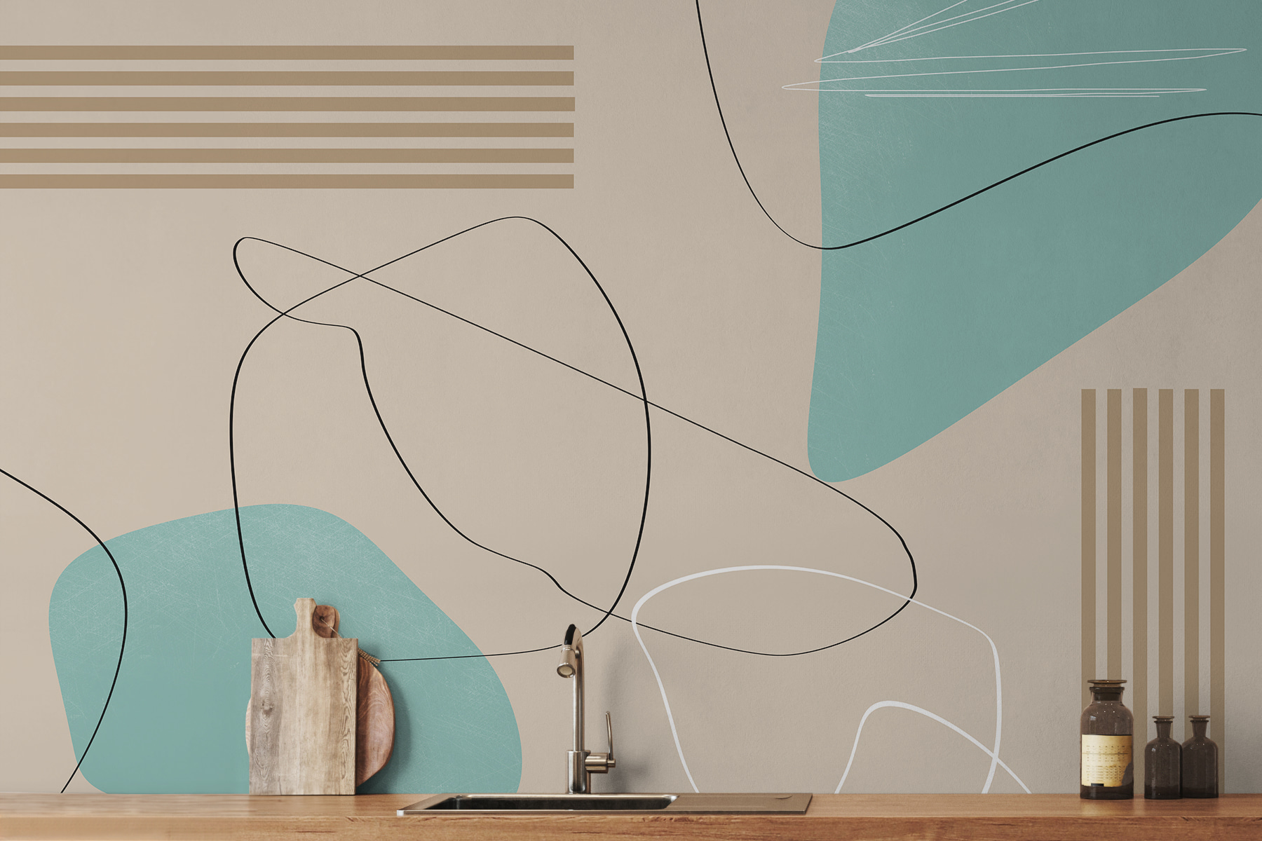 Stellen Sie sich vor, Sie betreten einen Raum und fühlen eine Welle kühler Ruhe über sich hereinbrechen. Dieses Wandbild “Blauer und weißer Hintergrund mit schwarzen Linien” schafft genau das. Es ist wie ein flippiger Tanz zwischen Pastelltönen und klaren Linien – abstrakt genug, um interessant zu sein, aber einfach genug, um überall zu passen. Perfekt für alle, die einen Hauch von moderner Kunst lieben, ohne dabei zu übertreiben. Ideal für ein Wohnzimmer, aber würde es nicht auch einen Büroraum völlig verändern? Es hat diese unübersehbare Ausstrahlung, ohne sich aufzudrängen. Superschick, ein bisschen verspielt – ein sofortiger Favorit in den Kollektionen “Abstrakte Wandbilder” und “Designertapeten für die Wand”.