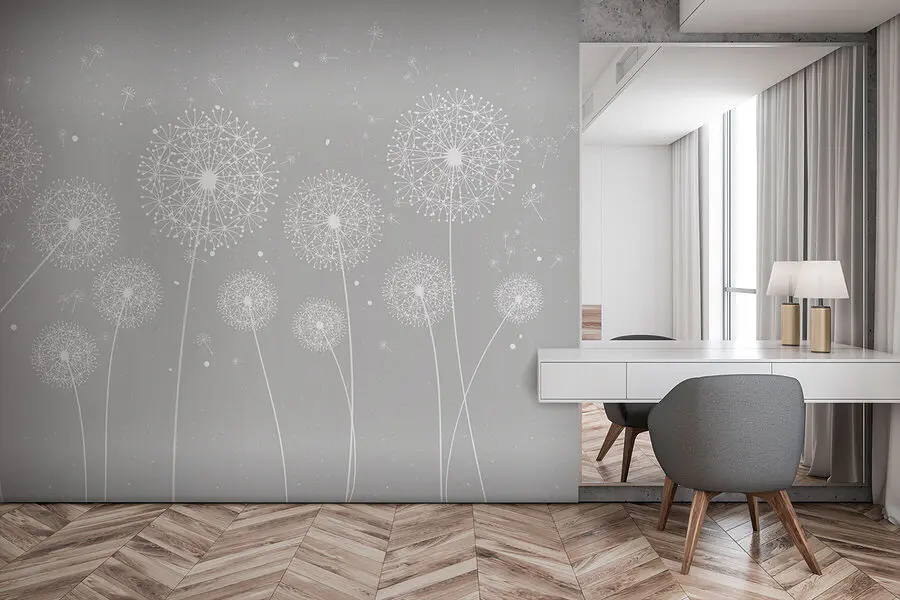 Diese atemberaubende Pusteblumen-Wandmalerei ist wie ein Hauch frischer Luft für Ihren Raum! Stellen Sie sich vor, Sie wachen auf und sehen diese zarten, weißen Pusteblumen in voller Blüte – es ist wie ein friedlicher, von der Natur inspirierter Traum, jeden Tag. Die Art und Weise, wie die Samen wegzuschweben scheinen, getragen von einer sanften Brise… sofortiges Zen.