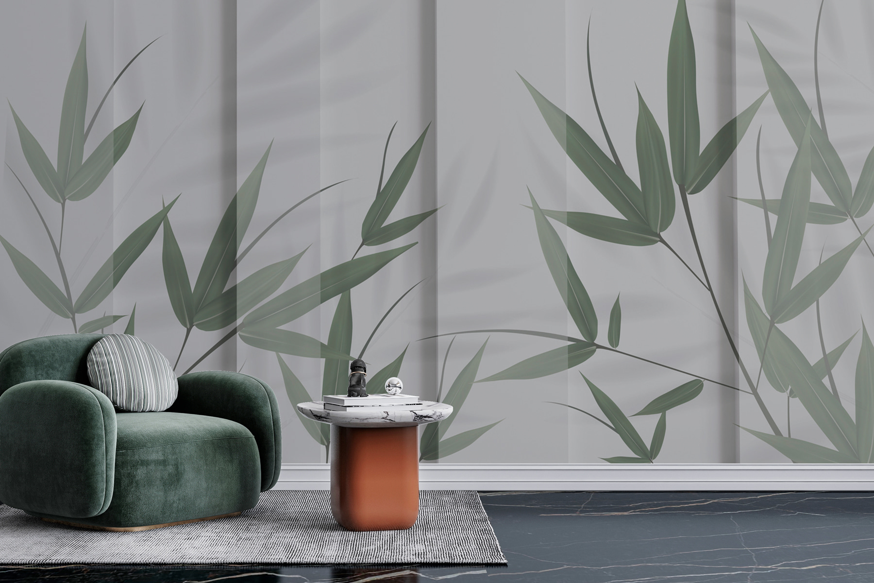 Betreten Sie eine ruhige Oase mit diesem wunderschönen Wandbild “Green Leaves and Shadows”. Stellen Sie sich üppige Bambusblätter vor, die sanft Schatten auf weichen Stoff werfen – es ist, als hätten Sie einen friedlichen Garten direkt in Ihrem Zimmer. Dies ist nicht nur ein Wandbild, es ist ein Stück Ruhe. Perfekt für eine Zen-Ecke, ein Schlafzimmer oder überall dort, wo Sie eine kleine grüne Therapie brauchen. Das moderne Design fügt sich nahtlos in jede Einrichtung ein, während der 3D-Effekt genau die richtige Tiefe verleiht. Sie werden fast spüren, wie eine leichte Brise mit den Blättern raschelt. Atmen Sie die Ruhe ein – Ihr Raum ist jetzt viel friedlicher!