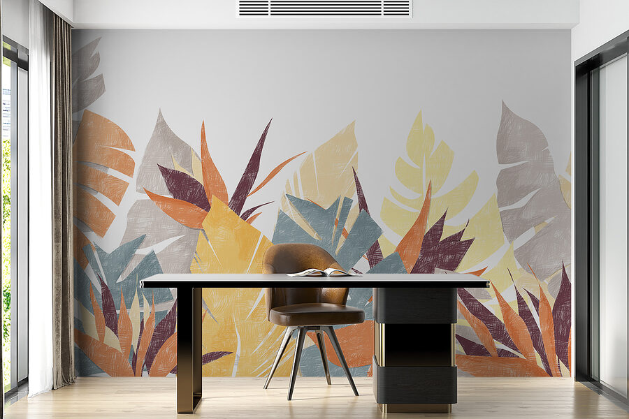 Wow, sehen Sie sich dieses Wandbild an – es strotzt nur so vor bunten Blättern! Stellen Sie sich vor, Sie kommen jeden Tag nach Hause und sehen dies. Es ist, als würde man sich ein Stückchen tropisches Abenteuer direkt ins Wohnzimmer holen. Die Blätter sind so lebendig und vielfältig, dass man das Gefühl hat, sie würden sich in einer sanften, magischen Brise wiegen.