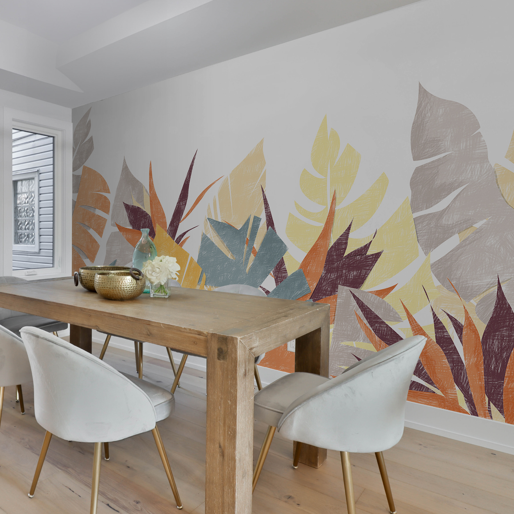 Ganz gleich, ob Sie die Natur lieben, tropische Vibes mögen oder einfach nur etwas viel Cooleres als schlichte Wände wollen, dieses Wandbild ist genau das Richtige für Sie. Es ist verspielt und doch raffiniert – ein Farbklecks, ohne aufdringlich zu sein. Außerdem haben diese warmen Orangetöne, kühlen Blautöne und erdigen Töne etwas an sich, bei dem man sich einfach wohl fühlt. Ein bisschen wie ein tropischer Wald, der auf die Leinwand eines Künstlers trifft – perfekt, um jeden Raum von trist in toll zu verwandeln.