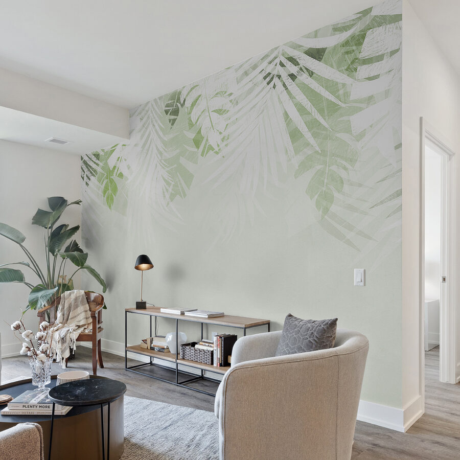 Fügen Sie etwas Grünzeug, einen bequemen Stuhl und vielleicht ein gutes Buch hinzu, und voilà – ein perfekter, grüner Rückzugsort. Ganz gleich, ob Sie ein Stadtbewohner sind, der sich nach einem Hauch von Natur sehnt, oder einfach nur jemand, der die Ästhetik von Blättern liebt – dieses Wandbild ist wie ein frischer Windhauch. Warum also nicht einen Hauch von den Tropen an Ihre Wände bringen? Sie haben es sich verdient.