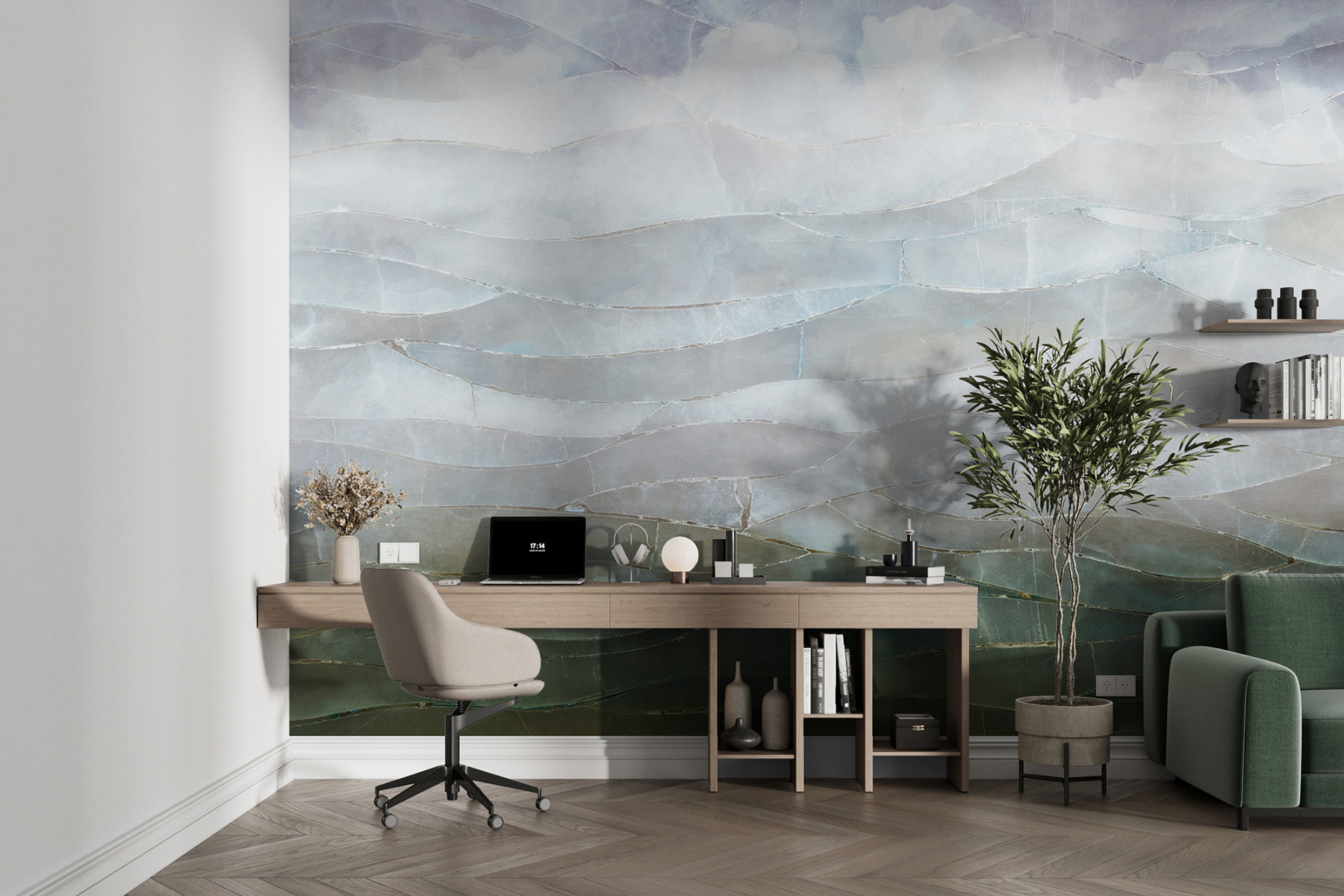 Stellen Sie sich vor: Sie kommen nach einem langen Tag nach Hause, werfen sich auf die Couch und schauen auf Ihre Wand – und schon sind Sie an einem Ort, an dem der Himmel auf das Meer trifft, mit einer nahtlosen Mischung aus Farben und Texturen. Die wellenförmigen Muster haben diesen fantastischen 3D-Effekt, der die Wand fast lebendig erscheinen lässt. Ziemlich cool, oder? Perfekt für ein Wohnzimmer, ein Schlafzimmer oder sogar einen kreativen Arbeitsbereich.