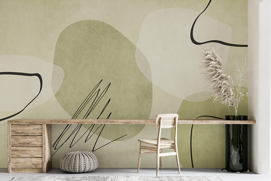 Diese Wandmalerei tanzt zwischen zeitgenössischer Stimmung und geometrischer Magie. Stellen Sie sich vor, Sie nippen an Ihrem Kaffee und ertappen sich dabei, wie Sie die Linien mit Ihren Augen nachzeichnen (oder es zumindest versuchen) – es ist einfach irgendwie hypnotisch und seltsam beruhigend. Perfekt für jene Momente, in denen man eine Pause vom Chaos braucht.