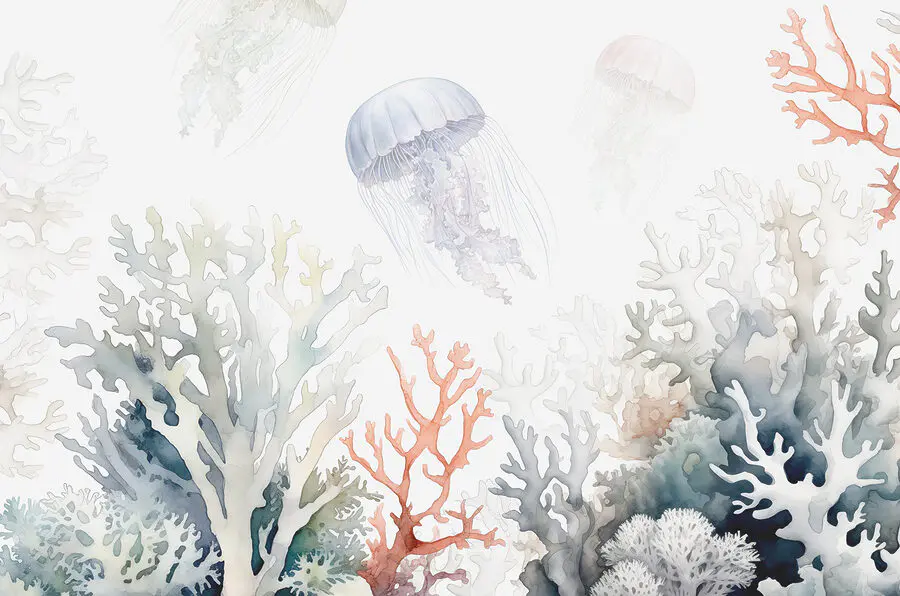 Stellen Sie sich vor, Sie schwimmen durch ein friedliches Unterwasserwunderland. Das ist die Art von Atmosphäre, die dieses Wandbild “Quallen, die über bunte Korallen treiben” in Ihren Raum bringt. Es ist wie ein Flüstern des Ozeans an Ihren Wänden! Die sanften Aquarelltöne sorgen für ein entspanntes Gefühl – fast so, als ob Sie das sanfte Wiegen des Meeres hören könnten. Perfekt für alle, die den Charme des Meeres lieben, denn es ist ein echter Gesprächsanlass. Machen Sie es sich in dieser ruhigen Szene bequem und lassen Sie Ihre Sorgen mit diesen wunderschönen Quallen verschwinden. Ein Hauch von Farbe und Ruhe in Ihrem Zuhause!