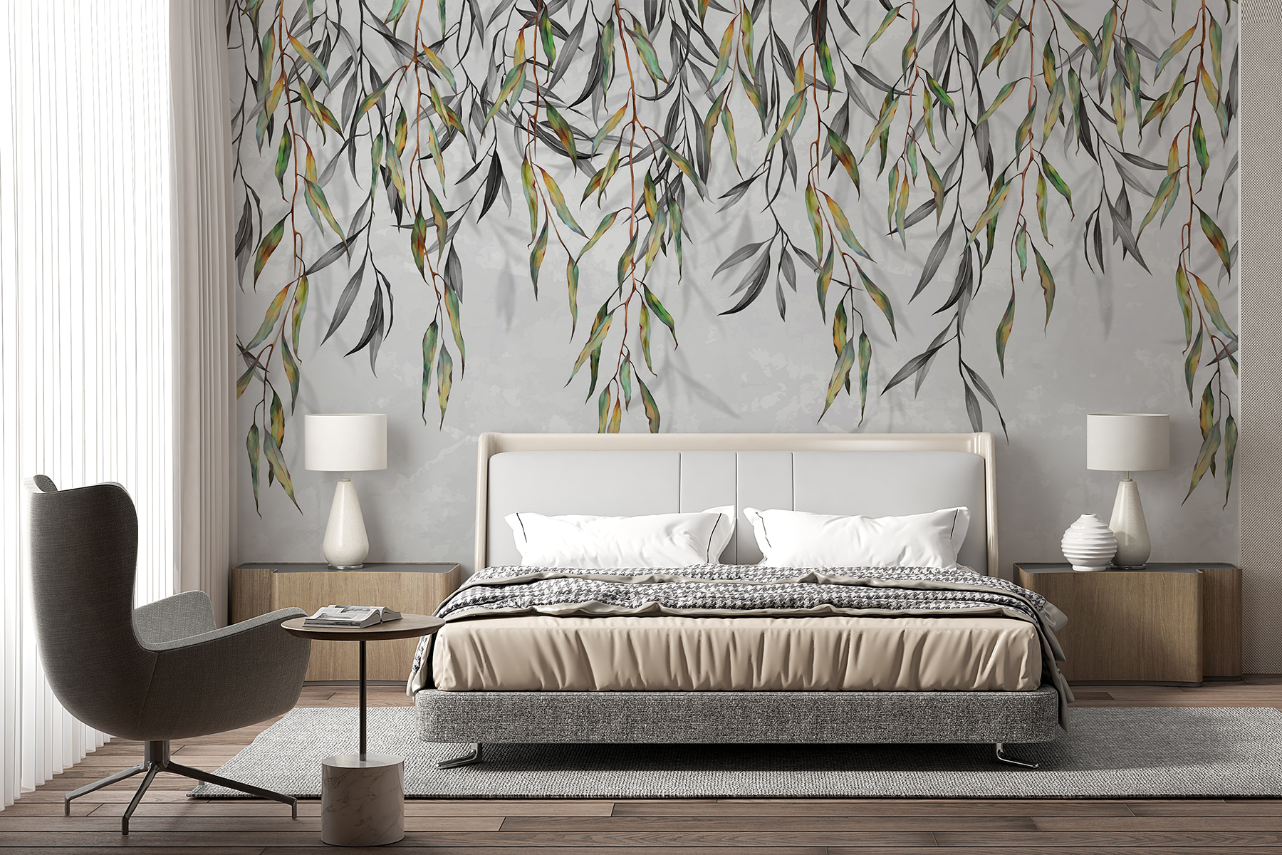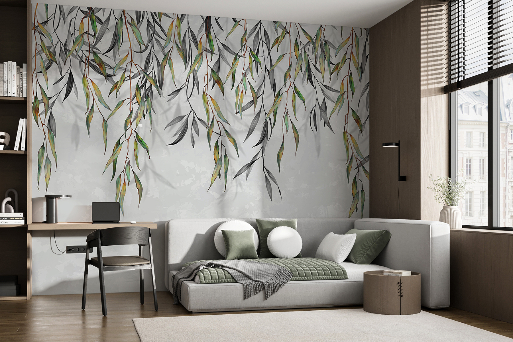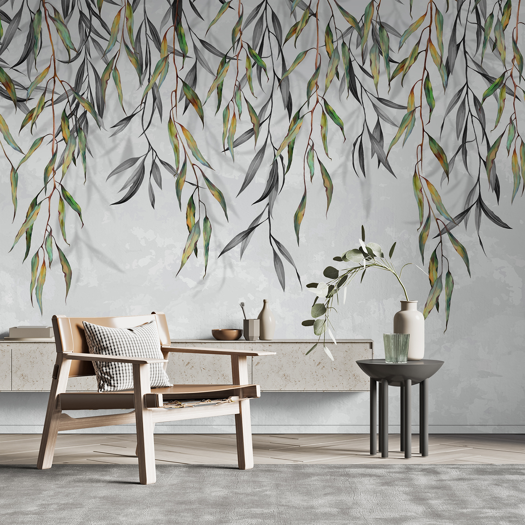Verwandeln Sie eine schlichte Wand in einen ruhigen Rückzugsort mit diesen hübschen Weidenblättern, die in der Brise tanzen. Stellen Sie sich vor, Sie betreten einen Raum, in dem das sanfte Wiegen der Natur eine ruhige Atmosphäre schafft – die perfekte Kulisse für gemütliche Gespräche oder ruhiges Lesen. Die sanften Farben verschmelzen auf wunderbare Weise und laden Wärme und einen Hauch von Natur in den Raum ein. Es ist, als hätten Sie ein kleines Stück eines friedlichen Waldes direkt in Ihrem Wohnraum. Freunde könnten es sogar für eine clevere Flucht in Ihren Lieblingspark halten. Mit diesem Wandbild fühlt sich jeder Tag ein bisschen wie ein sonniger Spaziergang unter den Bäumen an.