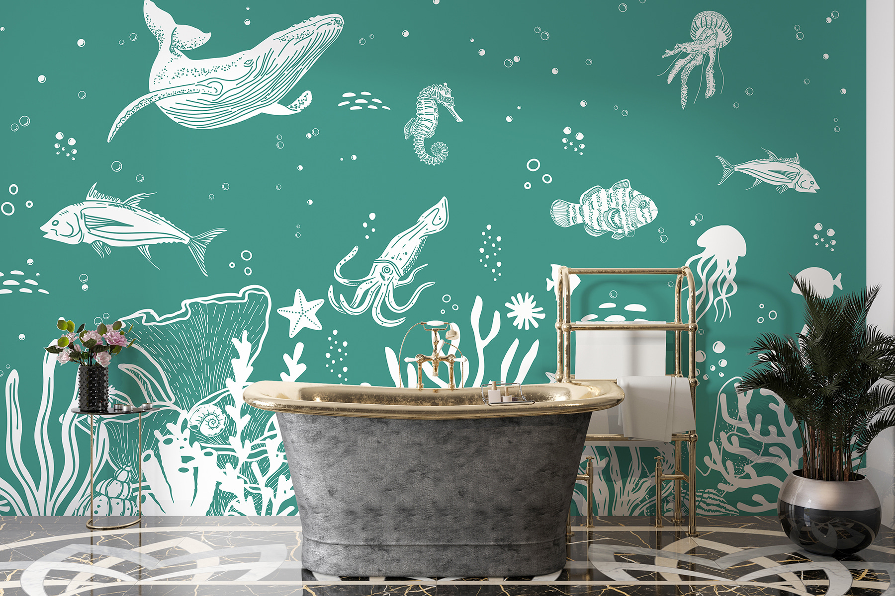 Hallo, Meeresliebhaber! Diese Fototapete “Zeichnung eines Tintenfisches” ist ein herrliches Unterwasserabenteuer direkt an deinen Wänden. Stell dir vor, du kommst in dein Wohnzimmer und fühlst dich, als wärst du in die Tiefsee eingetaucht – mit Wal, Seepferdchen und allem drum und dran! Es ist, als hätte man ein kleines Ozeanarium zu Hause. Perfekt für alle, die vom Meer träumen oder sich einfach einen friedlichen Raum mit Naturatmosphäre wünschen. Außerdem: Wer liebt keine Tintenfische? Sie sind die unbesungenen Helden des Meeres! Skurril, lustig und mit genau dem richtigen Hauch von Naturschönheit – ein Hauch von Meer, ohne dass man nasse Füße bekommt. Tauchen Sie ein und machen Sie Wellen in Ihrer Einrichtung! 🌊