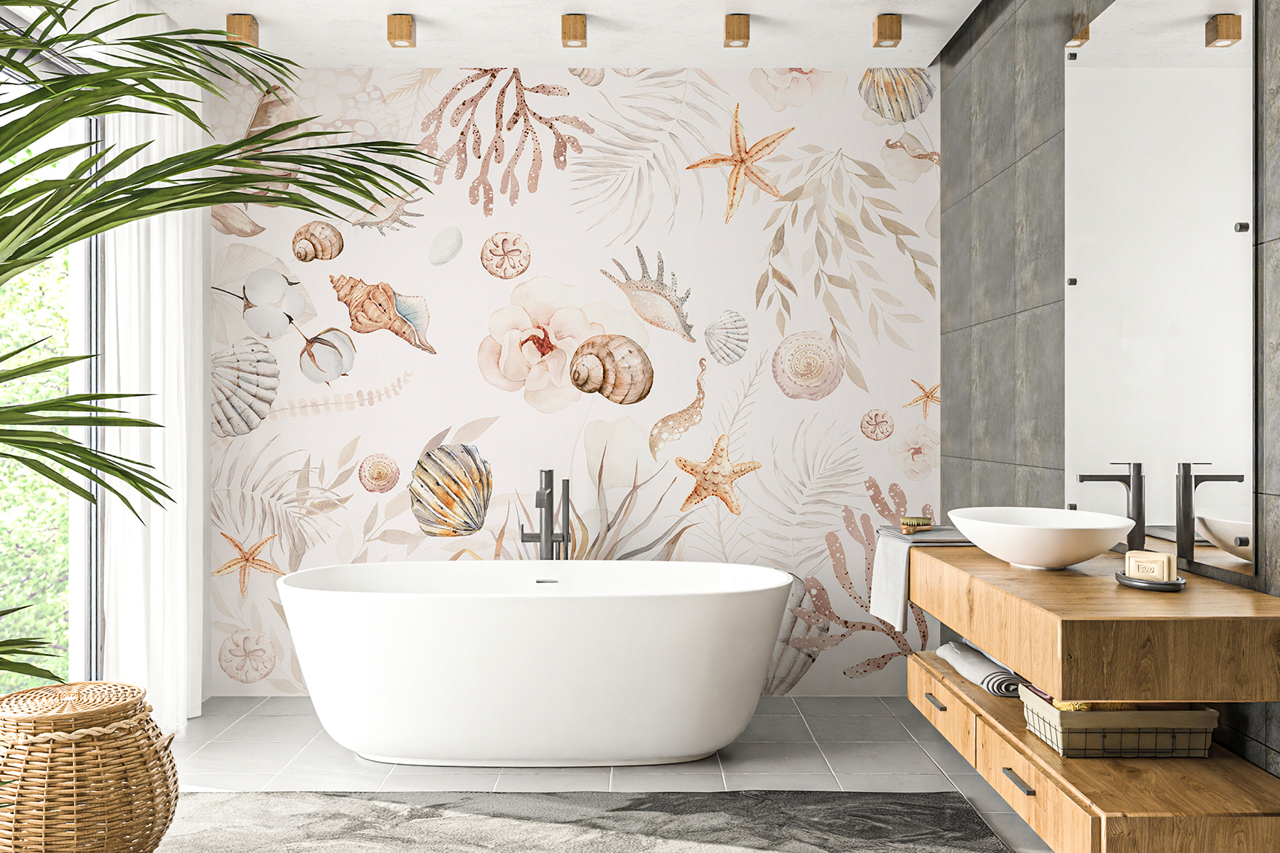 Verwandeln Sie Ihren Raum mit diesem bezaubernden Wandbild mit Seesternen und Muscheln auf strahlend weißem Hintergrund in einen Urlaubsort am Meer. Stellen Sie sich vor, Sie wachen mit dieser ruhigen Meeresatmosphäre auf, die Sie jeden Tag in den Urlaub entführt! Die sanften Farben und das verspielte Design vermitteln ein Gefühl der Ruhe und sind perfekt für jeden Raum, der einen Hauch von Natur braucht. Freunde werden bewundern, wie mühelos es sich mit einer Küsteneinrichtung oder auch nur mit der Sehnsucht nach Sandstränden verbinden lässt. Es ist wie eine sanfte Erinnerung an Strandspaziergänge und warmen Sonnenschein, ganz ohne Sand in den Schuhen. Perfekt für alle, die sich ein Stück Meer nach Hause holen wollen!