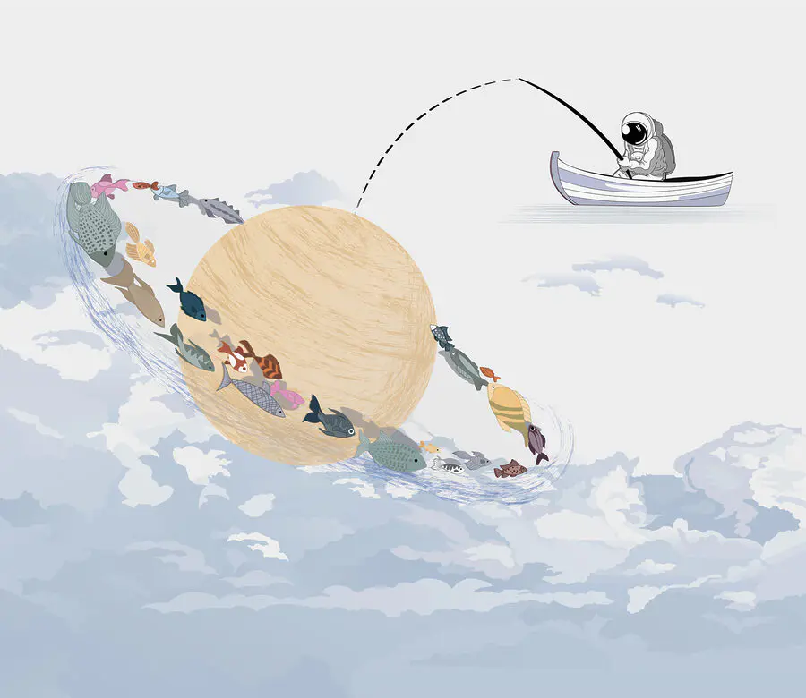 Fototapeten Karikatur eines Planeten mit Fischen darin (Artikelnummer: w00869)