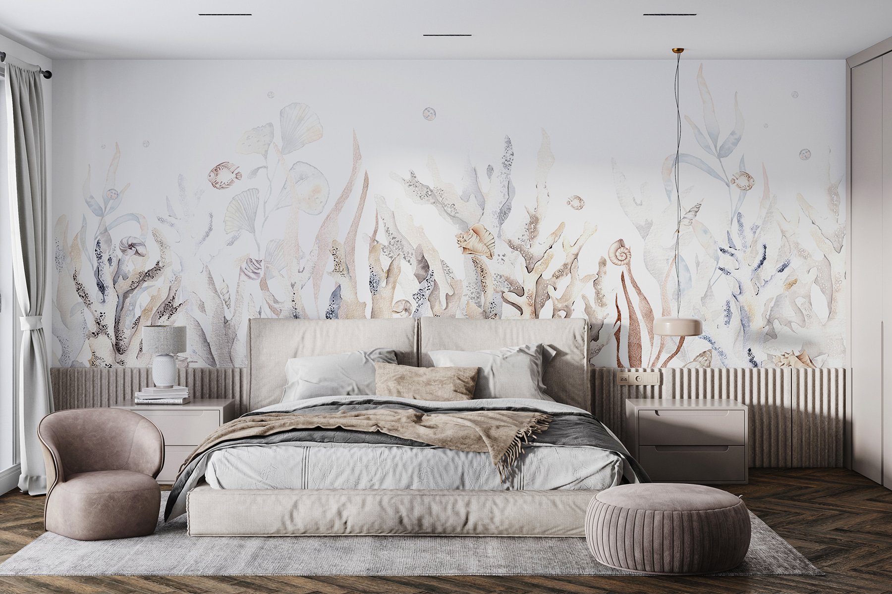 Stellen Sie sich vor, Sie betreten Ihr Zimmer und haben das Gefühl, in ein bezauberndes Unterwasserparadies eingetreten zu sein. Die Fototapete “Unterwassergarten mit Muscheln und Fischen” ist wie ein Stück Ozean direkt in Ihrem Zuhause. Mit seinen ruhigen Farben und zarten Details hat es diese beruhigende Ausstrahlung, die perfekt ist, um sich nach einem langen Tag zu entspannen. Man kann fast die kühle Meeresbrise spüren und die sanften Wellen hören, nicht wahr?