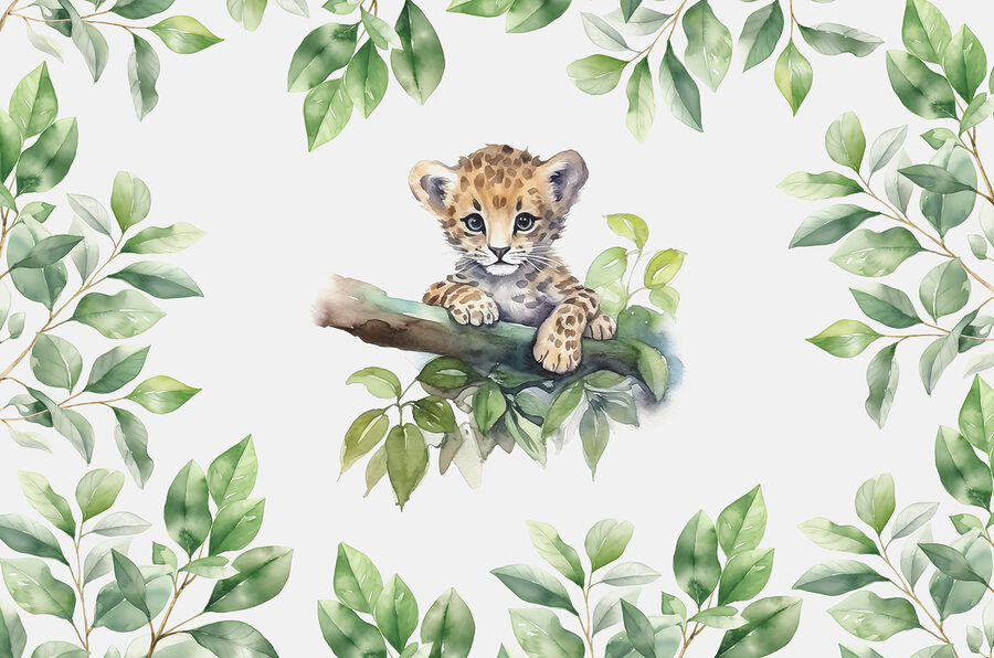 Möchten Sie jeden Morgen mit dem bezaubernden Gesicht eines Baby-Leoparden aufwachen? Diese Fototapete “Aquarell eines Leopardenbabys auf einem Baumzweig” ist wie ein Kuscheltier für Ihre Wände. Wer könnte diesen großen, neugierigen Augen schon widerstehen? Es ist nicht nur niedlich, sondern auch so, als ob man sich ein kleines Stück Wildnis nach Hause holt, ohne Käfer und Campingausrüstung. Die sanften Aquarelltöne und das satte Grün der Blätter lassen jeden Raum wie ein gemütliches Dschungelversteck erscheinen. Freunde werden von dieser Mischung aus Natur und Kunst begeistert sein – ganz gleich, ob es sich um Ihr Wohnzimmer, ein Kinderzimmer oder sogar Ihr Büro handelt. Perfekter Gesprächsanlass. Es ist so schön, dass Sie sich dabei ertappen, wie Sie von Safari-Abenteuern träumen… oder einfach Ihren Morgenkaffee mit einem Lächeln genießen. Spüren Sie, wie Ruhe und Charme in Ihren Tag eindringen, wenn Sie einen Blick auf diesen verspielten kleinen Kerl erhaschen. Unverkennbar unwiderstehlich.