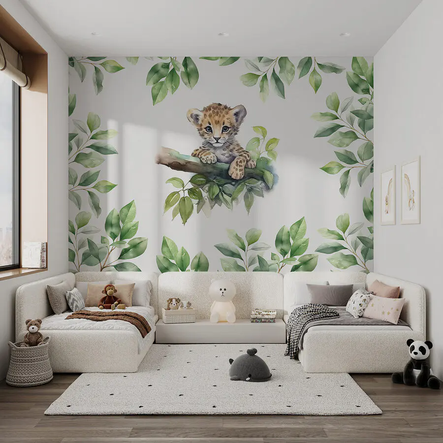 Möchten Sie jeden Morgen mit dem bezaubernden Gesicht eines Baby-Leoparden aufwachen? Diese Fototapete “Aquarell eines Leopardenbabys auf einem Baumzweig” ist wie ein Kuscheltier für Ihre Wände. Wer könnte diesen großen, neugierigen Augen schon widerstehen? Es ist nicht nur niedlich, sondern auch so, als ob man sich ein kleines Stück Wildnis nach Hause holt, ohne Käfer und Campingausrüstung. Die sanften Aquarelltöne und das satte Grün der Blätter lassen jeden Raum wie ein gemütliches Dschungelversteck erscheinen. Freunde werden von dieser Mischung aus Natur und Kunst begeistert sein – ganz gleich, ob es sich um Ihr Wohnzimmer, ein Kinderzimmer oder sogar Ihr Büro handelt. Perfekter Gesprächsanlass. Es ist so schön, dass Sie sich dabei ertappen, wie Sie von Safari-Abenteuern träumen… oder einfach Ihren Morgenkaffee mit einem Lächeln genießen. Spüren Sie, wie Ruhe und Charme in Ihren Tag eindringen, wenn Sie einen Blick auf diesen verspielten kleinen Kerl erhaschen. Unverkennbar unwiderstehlich.