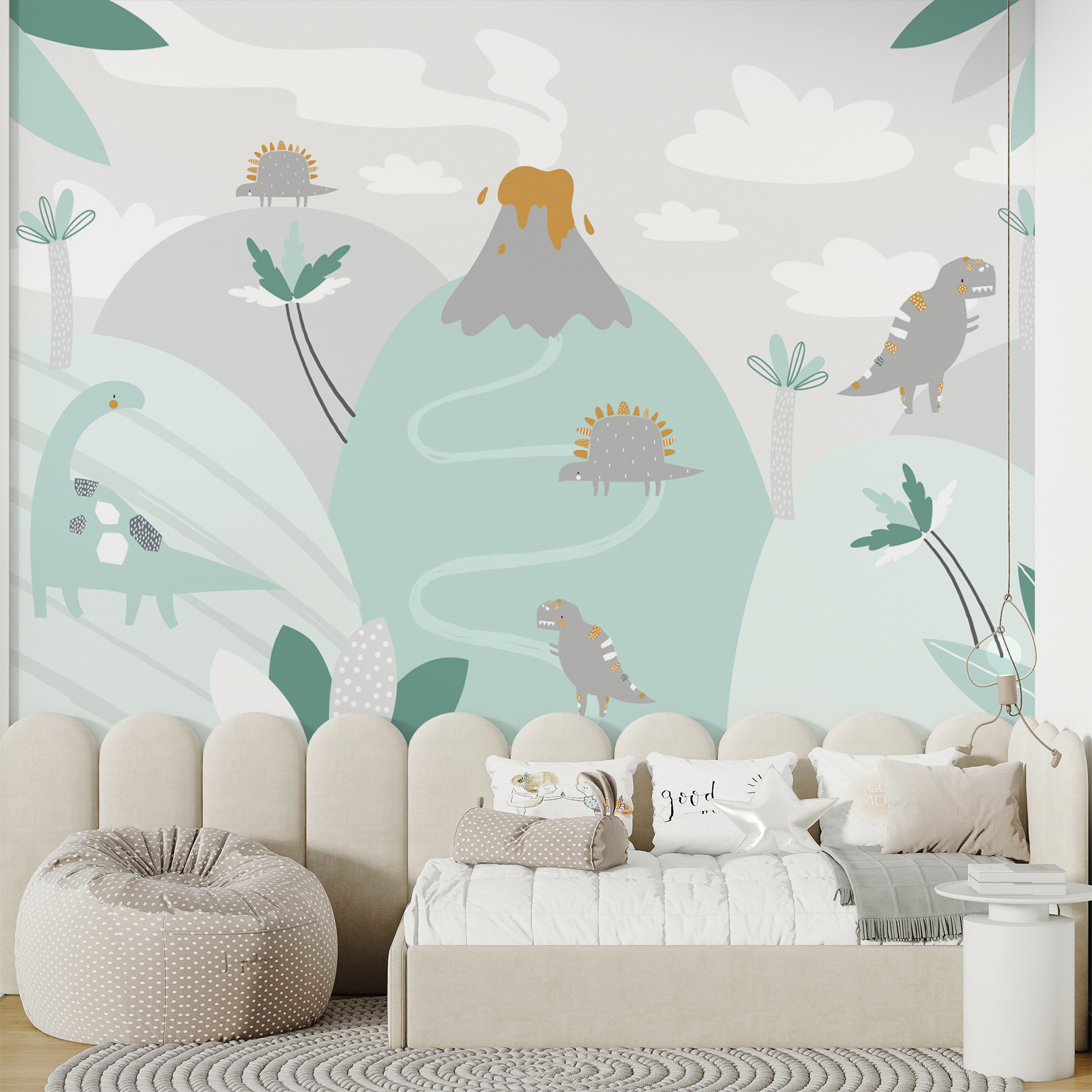Haben Sie schon einmal daran gedacht, Ihren Raum in ein episches Dschungelabenteuer zu verwandeln? Diese Fototapete “Cartoon of a Volcano” macht genau das. Stellen Sie sich Dinosaurier vor, die sich in leuchtenden Farben um einen entzückenden (nicht zu furchterregenden) ausbrechenden Vulkan schlängeln. Es ist wie eine Szene, die direkt der Fantasie eines Kindes entsprungen ist, perfekt, um Neugier und Spaß in jedem Zimmer zu wecken. Ob im Kinderzimmer oder im Spielzimmer, diese Fototapete entführt jeden in eine skurrile Welt, in der freundliche Dinosaurier umherstreifen und das aufregende Glühen eines Vulkans Staunen hervorruft. Bonus: Es verleiht einen gewissen Charme und regt zu Gesprächen an. Perfekt für junge und junggebliebene Dino-Fans. Pure Magie an Ihrer Wand!