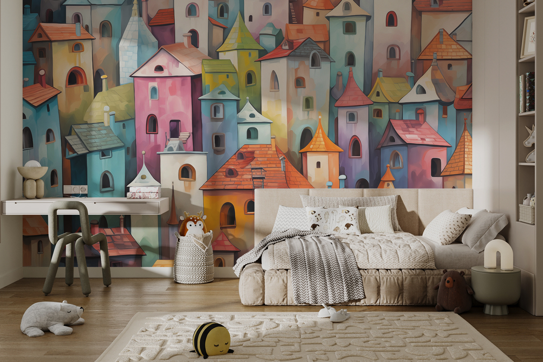 Verwandeln Sie jede Wand in eine lebendige Straßenszene mit diesem Wandbild aus bunten Gebäuden. Stellen Sie sich vor, Sie betreten ein skurriles Dorf, in dem jedes Gebäude seine eigene Geschichte erzählt und die leuchtenden Farbtöne im Licht tanzen. Stellen Sie sich ein Wochenendtreffen mit Freunden vor, deren Lachen widerhallt, während sie den verspielten Charme dieses Kunstwerks bewundern. Es ist, als ob Sie einen Ausbruch von Freude direkt in Ihr Wohnzimmer – oder Ihre Küche oder wo auch immer Sie wollen – bringen würden! Es ist perfekt, um einen langweiligen Raum aufzulockern und verleiht ihm einen Hauch von Magie, der alle zum Lächeln bringt. Wer würde sich nicht von einem Spritzer Farbe inspiriert fühlen?