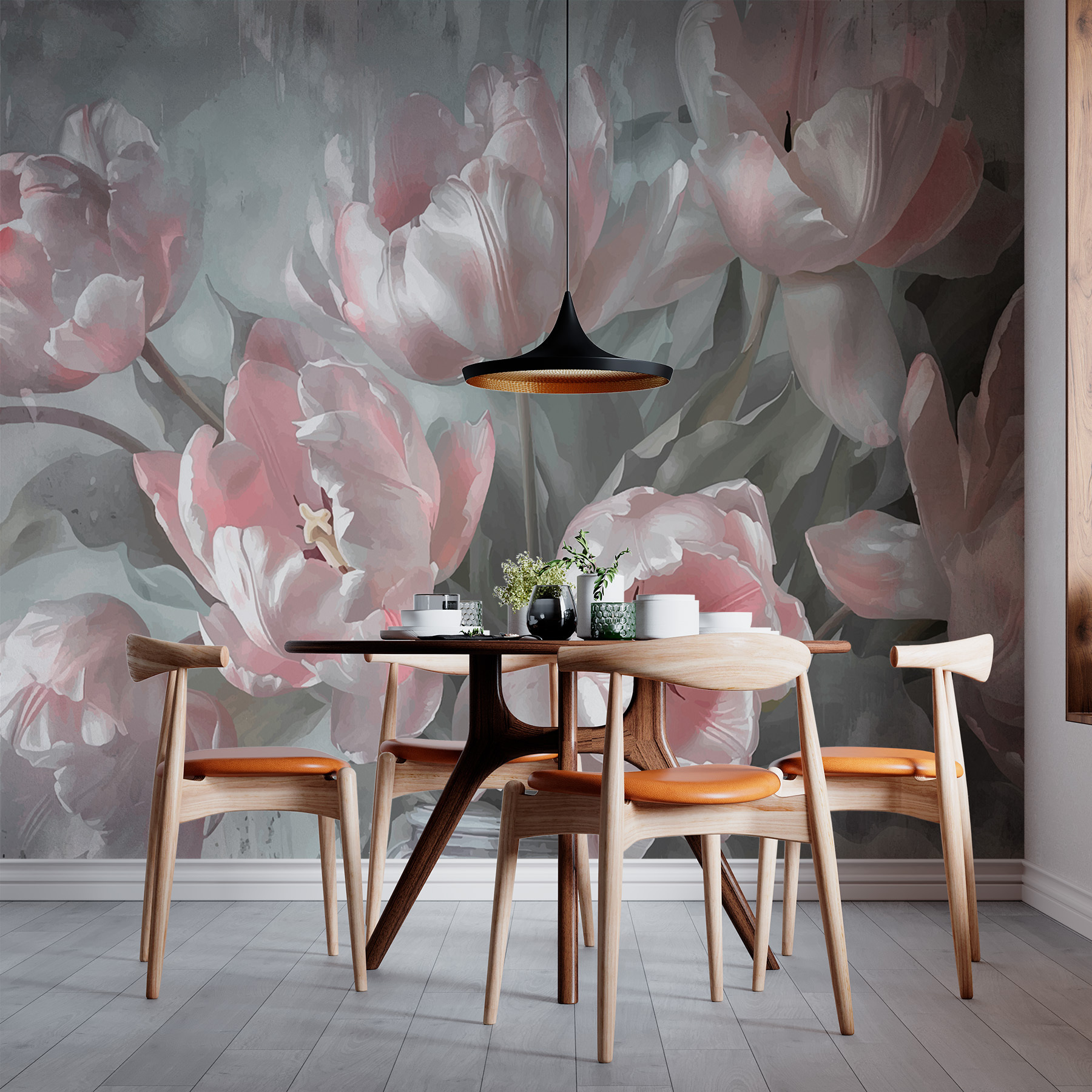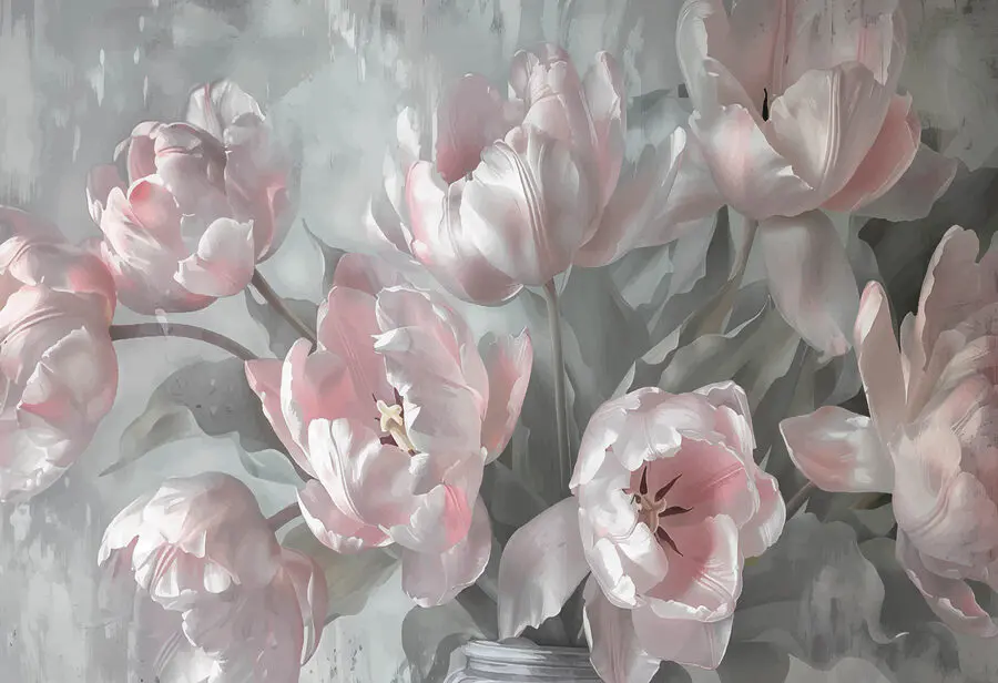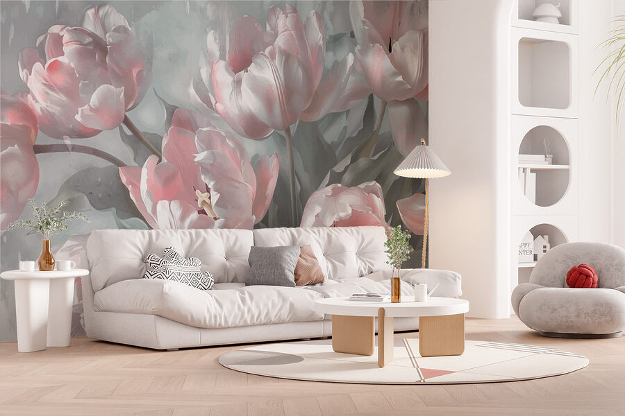 Verwandeln Sie jeden Raum in einen heiteren Rückzugsort mit dieser atemberaubenden Fototapete “Soft Pastels in Bloom”. Stellen Sie sich vor, Sie treten in einen Garten voller verträumter pastellfarbener Tulpen, wobei jedes Blütenblatt einen sanften Hauch von Eleganz ausstrahlt. Die sanften Farbtöne verbreiten eine ruhige Stimmung, perfekt für gemütliche Vormittage mit einer Tasse Kaffee oder Nachmittage zum Träumen. Freunde werden vorbeikommen, und statt des üblichen Smalltalks werden sie vielleicht nur sagen: “Wow, wo hast du das her?” Es ist wie ein Hauch frischer Luft, angenehm für die Augen und so fröhlich, dass es nur darauf wartet, Ihren Raum in florale Glückseligkeit zu hüllen.