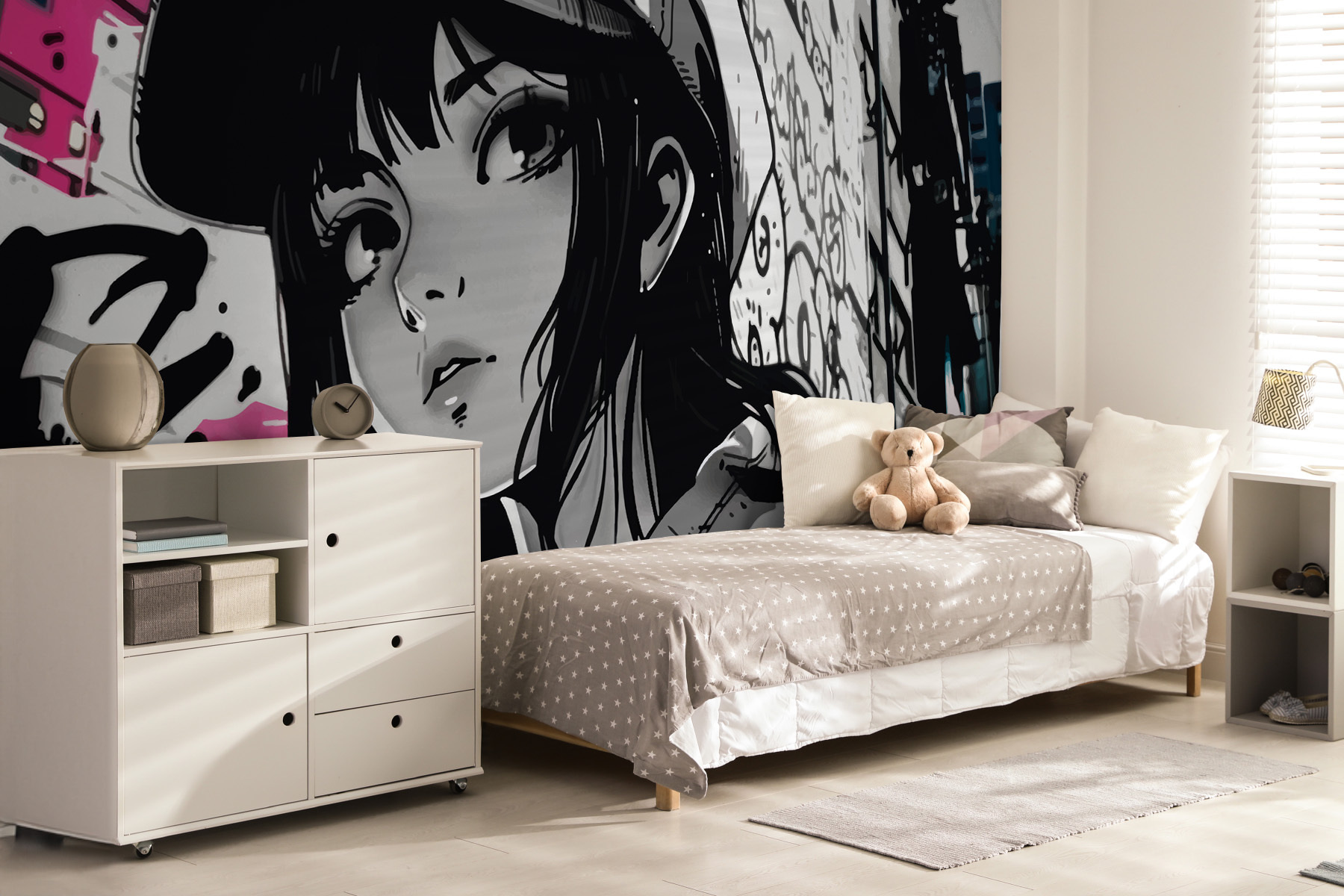 Bringen Sie einen Hauch von künstlerischem Flair in jeden Raum mit dieser fesselnden Fototapete, die eine schicke Frau mit einem Hut zeigt. Stellen Sie sich vor, Sie betreten eine gemütliche Ecke, in der diese Fototapete zu Gesprächen anregt und die Kreativität fördert. Die kontrastreichen Farben und kühnen Linien verleihen dem Bild einen modernen Touch und machen es perfekt für jeden Raum eines jungen Menschen. Es ist, als hätte man eine Galerie für Straßenkunst direkt zu Hause! Egal, ob man gerade einen Kaffee trinkt oder eine Lerneinheit plant, dieses Wandbild sorgt für eine inspirierende Atmosphäre, die mühelos cool ist. Vielleicht bleiben sogar Freunde stehen, um ein oder zwei Selfies davor zu machen!