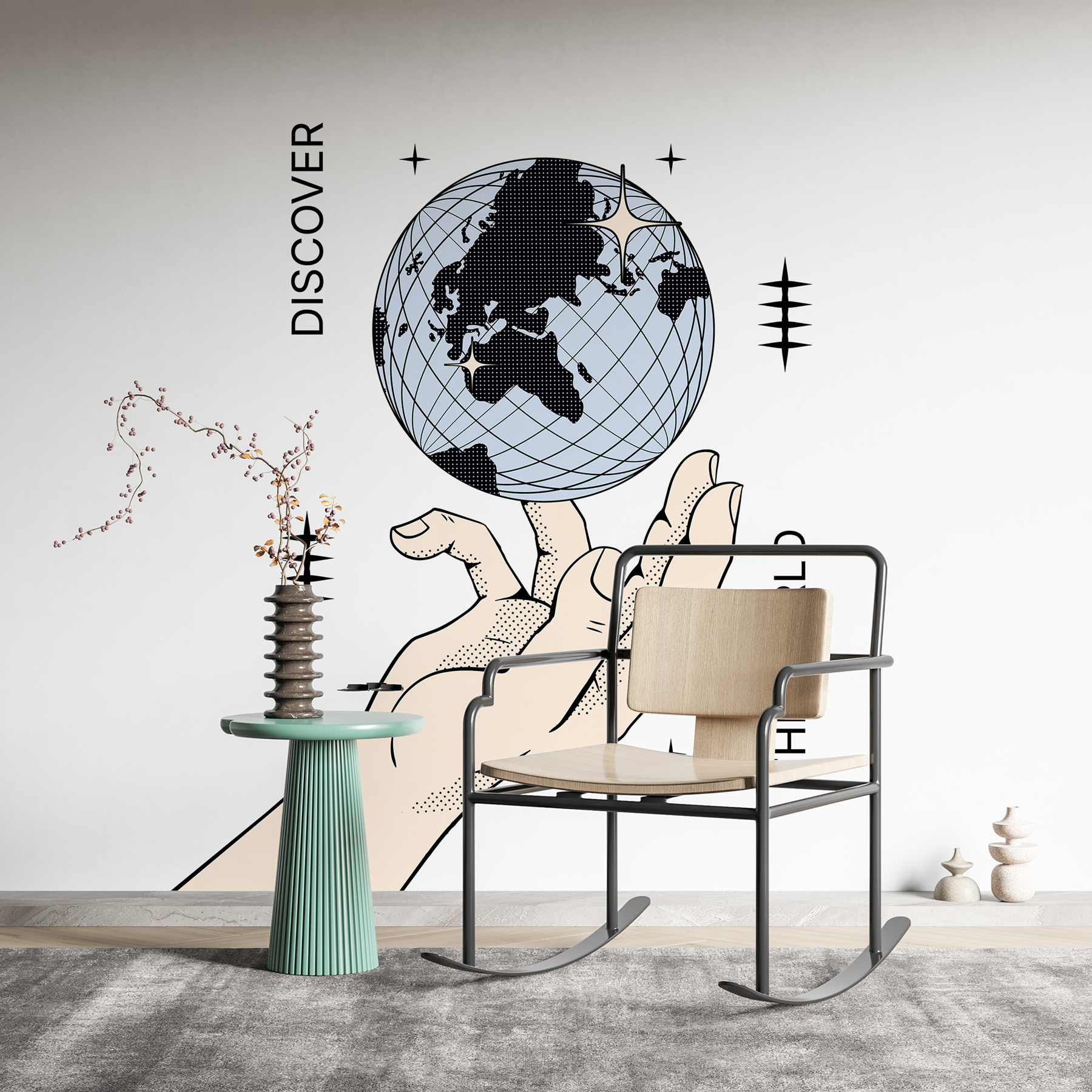 Stellen Sie es sich an Ihrer Wand vor… jedes Mal, wenn Sie es betrachten, bekommen Sie ein Gefühl von Fernweh. Es ist wie eine kleine Flucht, direkt in Ihrem Wohnzimmer! Das Design ist so elegant und stilvoll, mit einer Hand, die anmutig die Welt hochhält – ein echtes Statement!