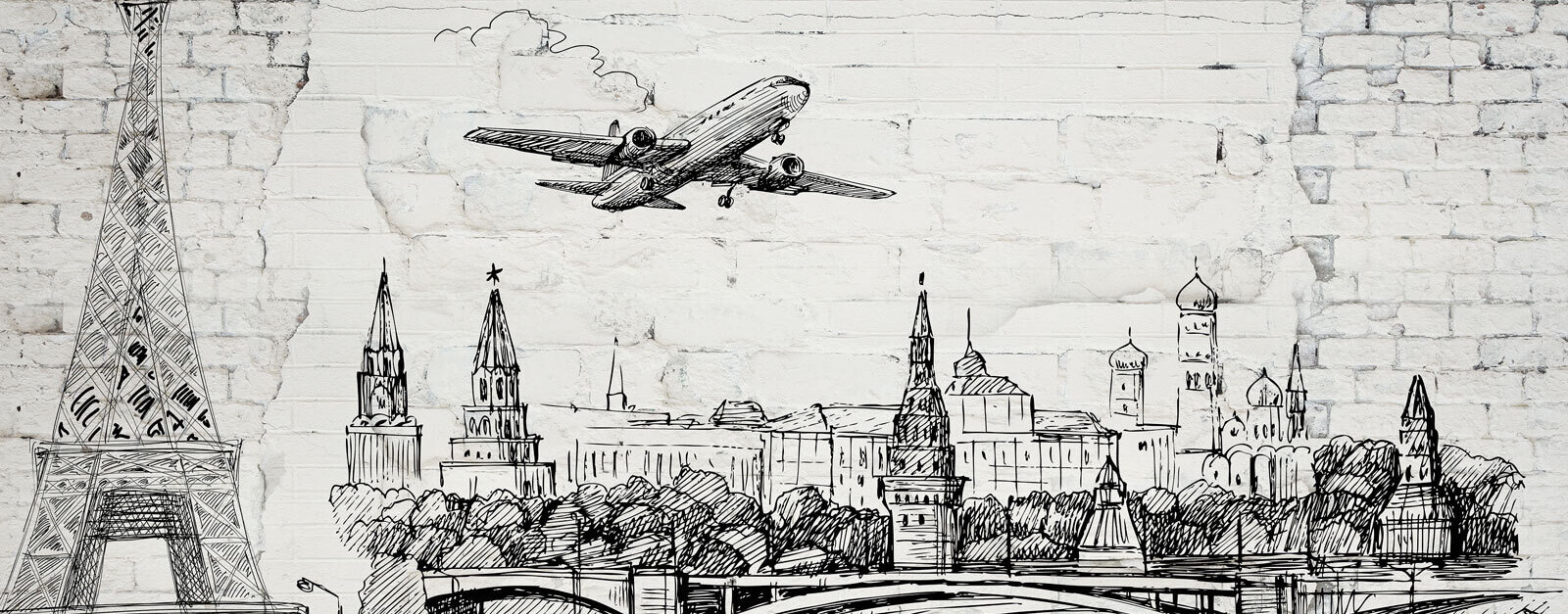 Fototapeten Zeichnung einer Stadt und einer Brücke