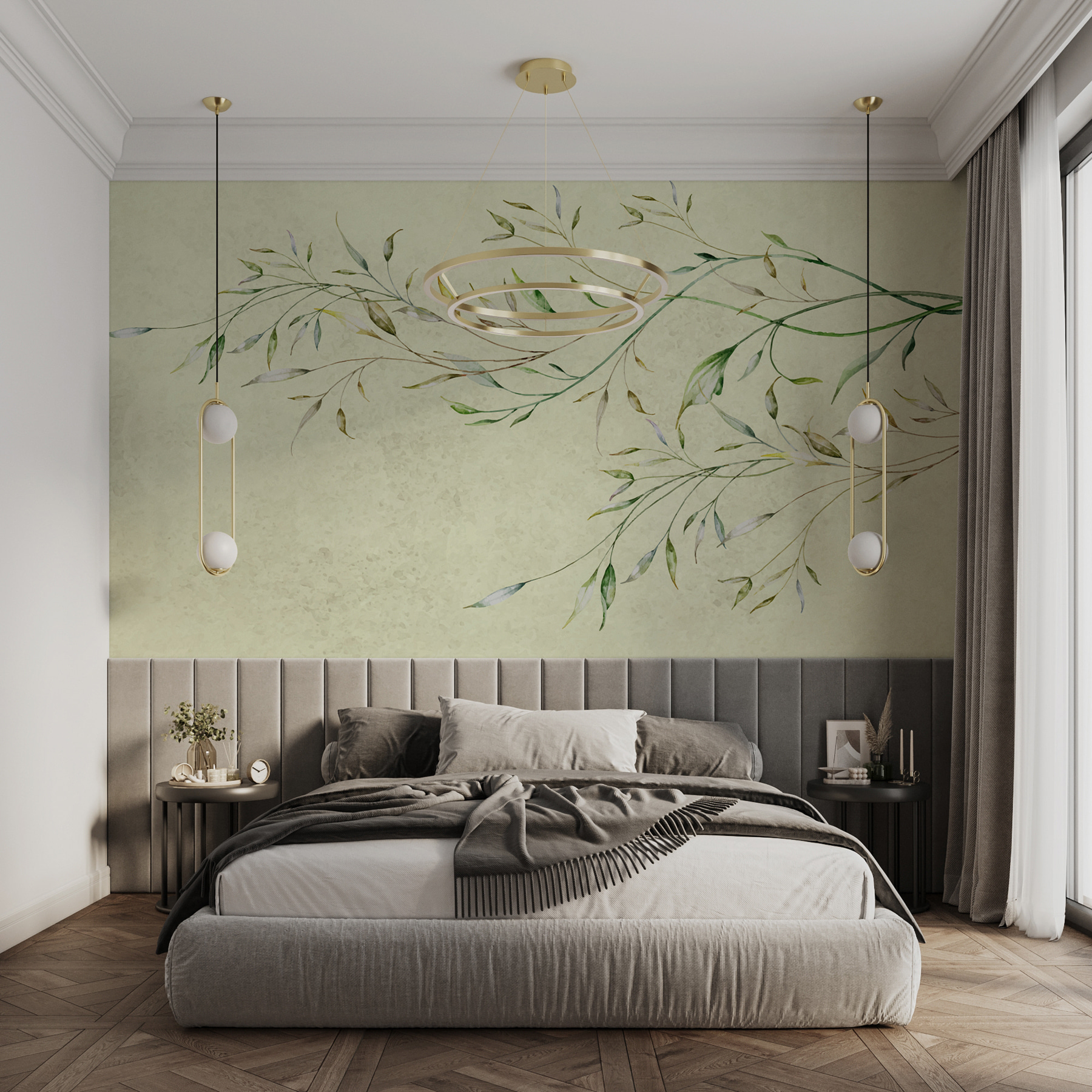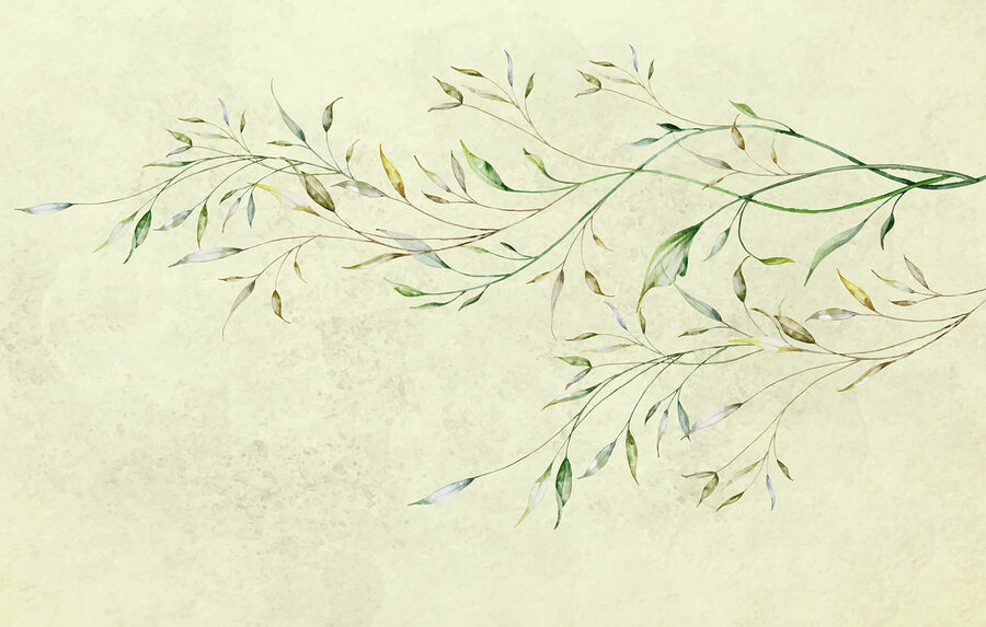 Verwandeln Sie Ihren Raum mit dieser bezaubernden Fototapete, die einen zarten, blattgeschmückten Zweig zeigt, als würde die Natur auf Zehenspitzen in Ihr Heim schleichen. Der weiche Aquarelleffekt verleiht dem Bild einen sanften Touch, so dass es fast wie ein Flüstern aus der freien Natur wirkt. Hängen Sie es in einer gemütlichen Ecke oder in Ihrem Lieblingszimmer auf und spüren Sie, wie Sie sich entspannen, als säßen Sie unter einem Baum in einem ruhigen Park. Jedes Blatt scheint mit anmutigem Charme zu tanzen und lädt zu einem Gefühl der Ruhe ein. Es ist die perfekte Kulisse für gemütliche Lesestunden oder angeregte Gespräche beim Tee. Stellen Sie sich nur die Komplimente von Freunden vor. Noch nie hat sich Dekoration so erfrischend angefühlt.