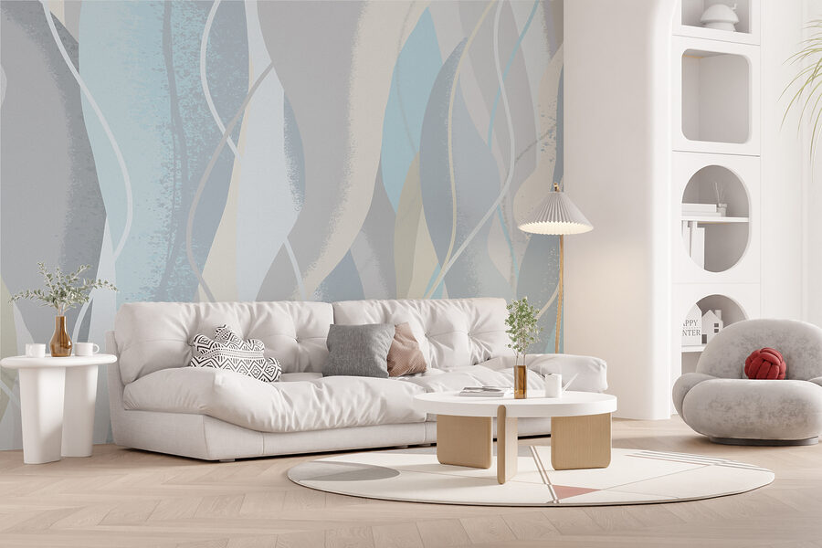 Verwandeln Sie jeden Raum mit der Fototapete “Elegant Ribbons of Cool Hues”. Stellen Sie sich vor, Sie betreten einen Raum, in dem weiche Blautöne und sanfte Grautöne über die Wand tanzen und eine beruhigende Kulisse schaffen, die perfekt zum Entspannen ist. Es ist, als hätte man ein Kunstwerk, das Ruhe ausstrahlt, ohne nach Aufmerksamkeit zu schreien. Stellen Sie sich vor, Sie machen es sich mit einem Buch gemütlich und die kühlen Farbtöne legen sich wie eine kuschelige Decke um Sie. Vielleicht bewundern sogar Freunde im Vorbeigehen die anmutigen Bänder und fragen: “Woher hast du das?” Es ist nicht nur Dekoration, sondern auch ein Stimmungsaufheller, der mühelose Eleganz in das tägliche Leben bringt. Ein Hauch von Einzigartigkeit, der sich einfach richtig anfühlt.