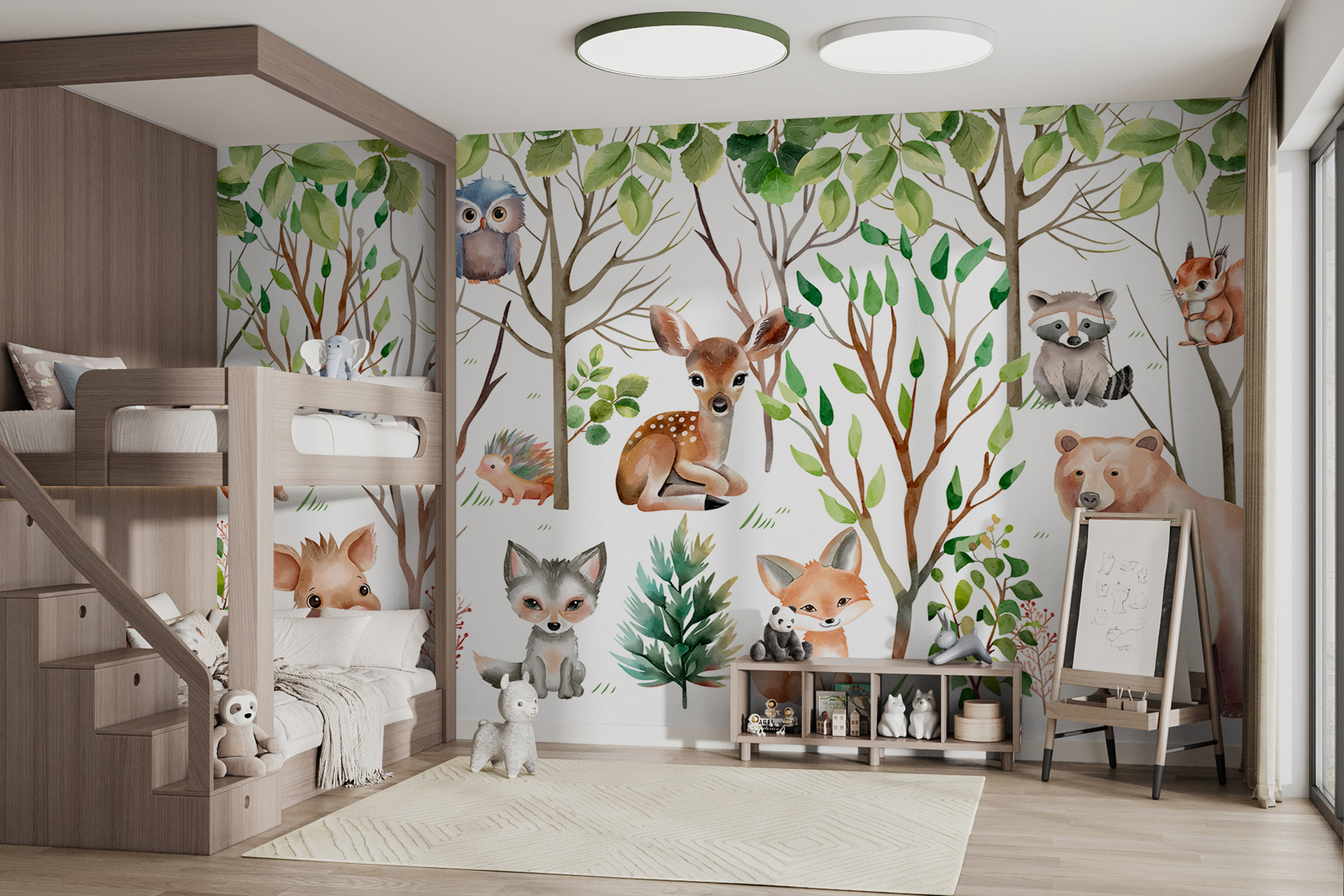 Ah, der Zauber der Wildnis! Stellen Sie sich vor, Sie wachen auf und befinden sich mitten in einem Märchenwald. Das ist es, was dieses Wandbild “Group of Animals in the Woods” in Ihren Raum bringt. Niedliche Waldtiere lugen spielerisch hervor – Kaninchen, Eulen und sogar ein neugieriger Bär – und verleihen dem Ganzen einen Hauch von Laune. Es ist wie eine gemütliche Hütte zu Hause, nur ohne Mückenspray! Ideal für Kinderzimmer oder Wohnräume, die einen Hauch von Wärme und Wunder suchen. Ihre Freunde werden Sie vielleicht sogar fragen, ob Sie irgendwo ein geheimes Waldstück versteckt haben. Wer hätte gedacht, dass die Natur so freundlich sein kann?