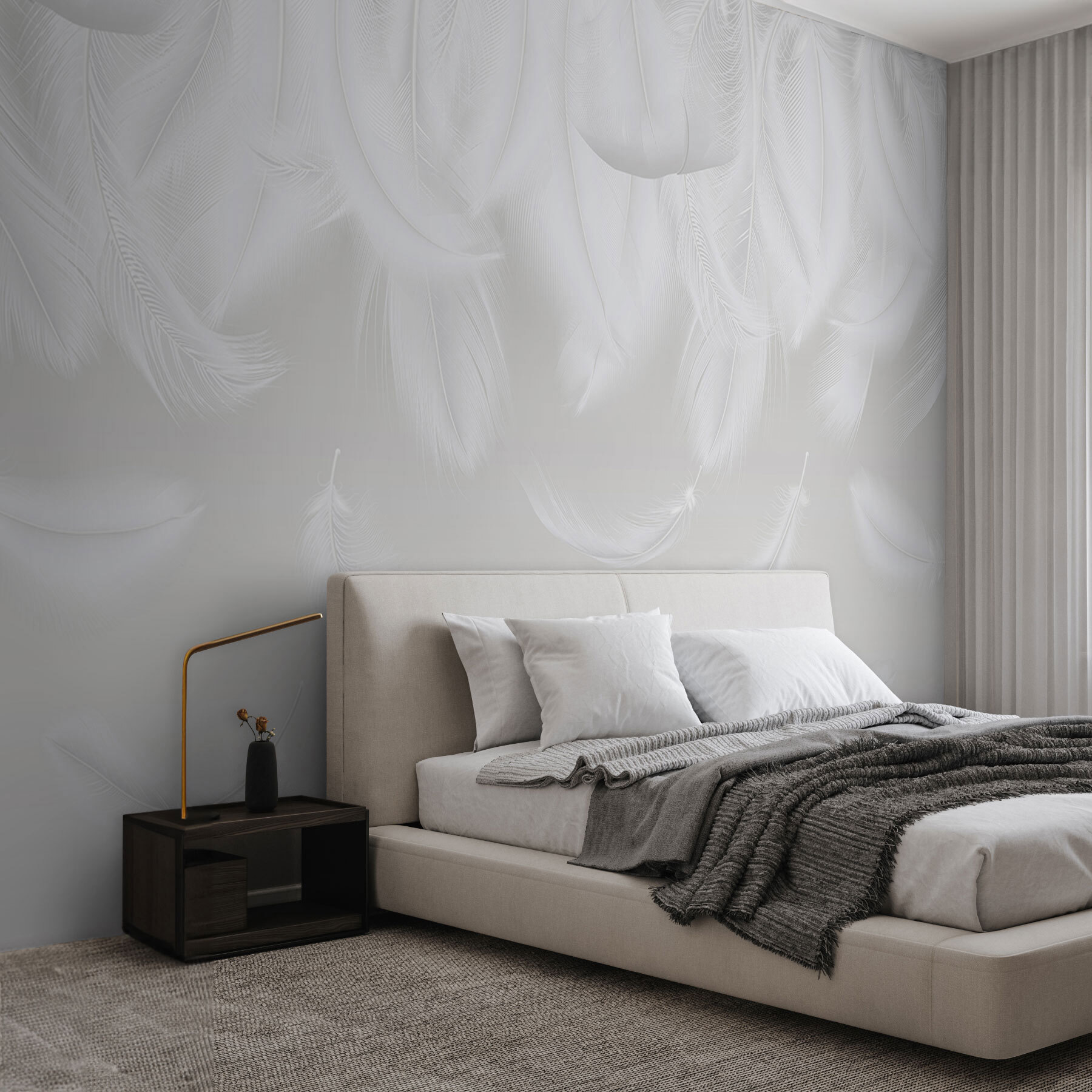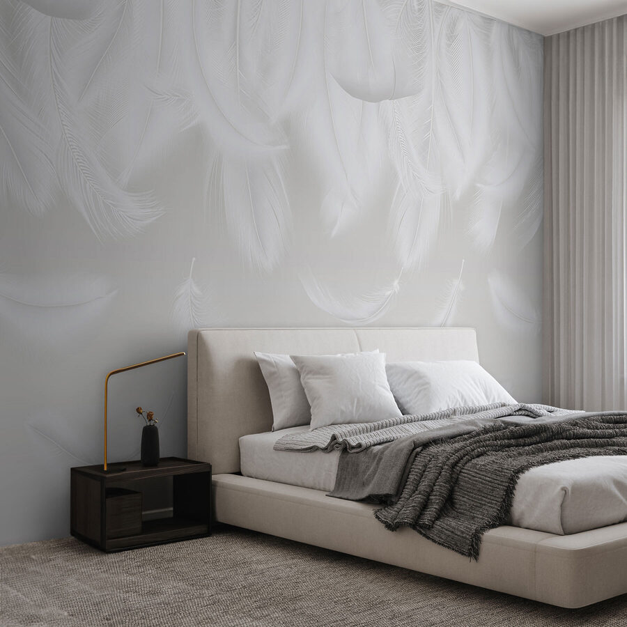“Fototapeten White Feathers Falling Down” ist wie eine sanfte Brise in Ihrem Wohnbereich. Stellen Sie sich vor, Sie machen es sich an einem Sonntagmorgen gemütlich und schlürfen einen Kaffee, während diese zarten Federn an Ihrer Wand hinunterschweben. Es ist, als ob Sie Ihrem Zimmer eine sanfte, luftige Umarmung geben. Diese Fototapete verleiht dem Raum einen Hauch von Eleganz und verwandelt eine schlichte Wand in einen kunstvollen Rückzugsort. Perfekt für alle, die es lieben, ein wenig auf den Wolken zu schweben. Und hey, vielleicht regt es sogar zu ein paar verträumten Gedanken oder launigen Gesprächen an. Denn wer braucht nicht ab und zu einen kleinen Tagtraum?