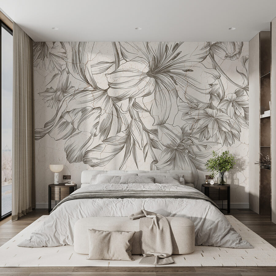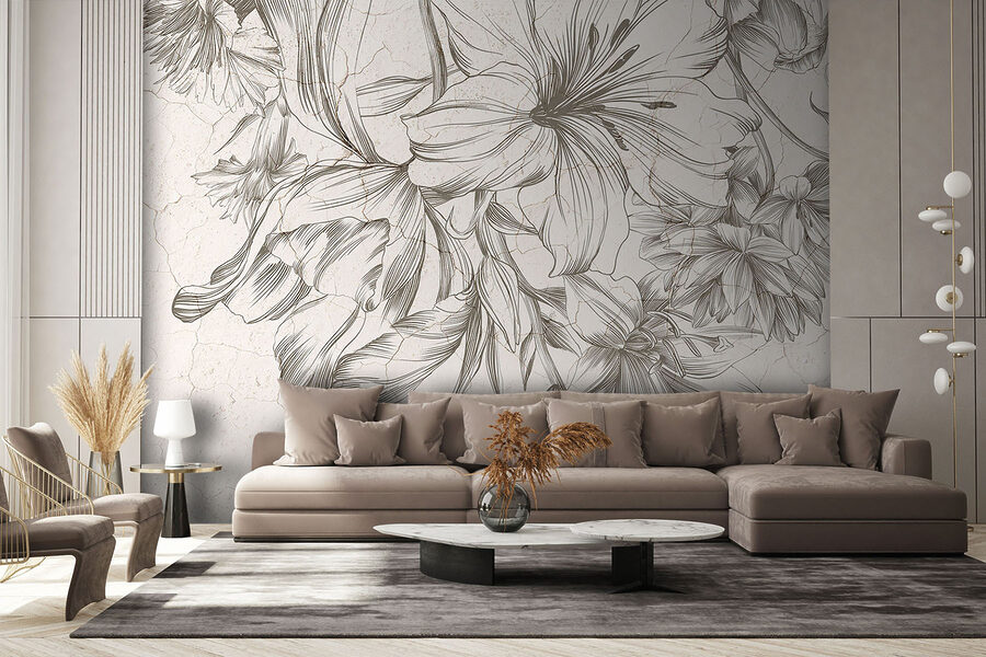 Fototapeten Elegante Skizze mit zeitlosem Blumenschmuck Fototapeten Elegante Skizze mit zeitlosem Blumenschmuck