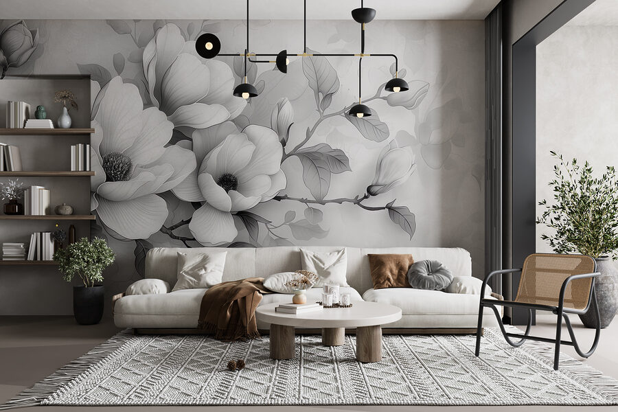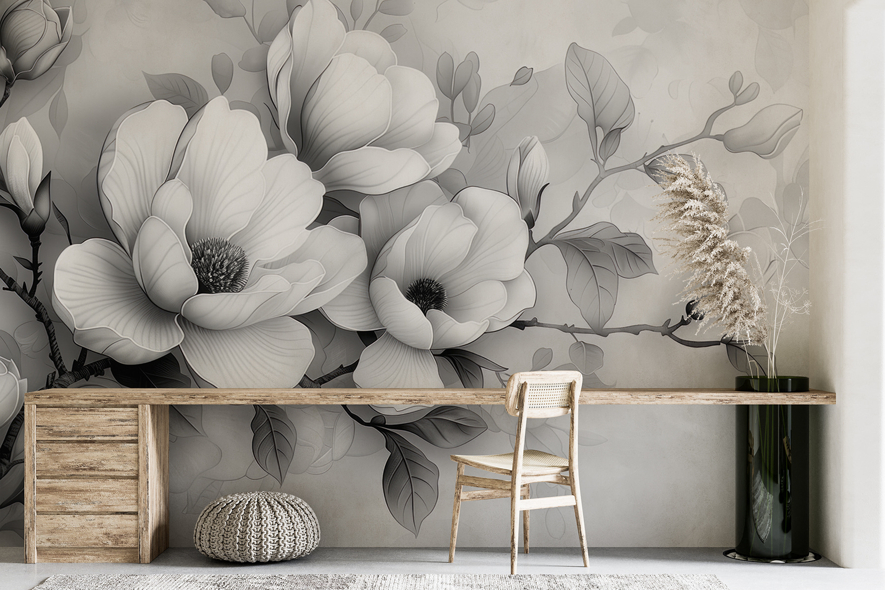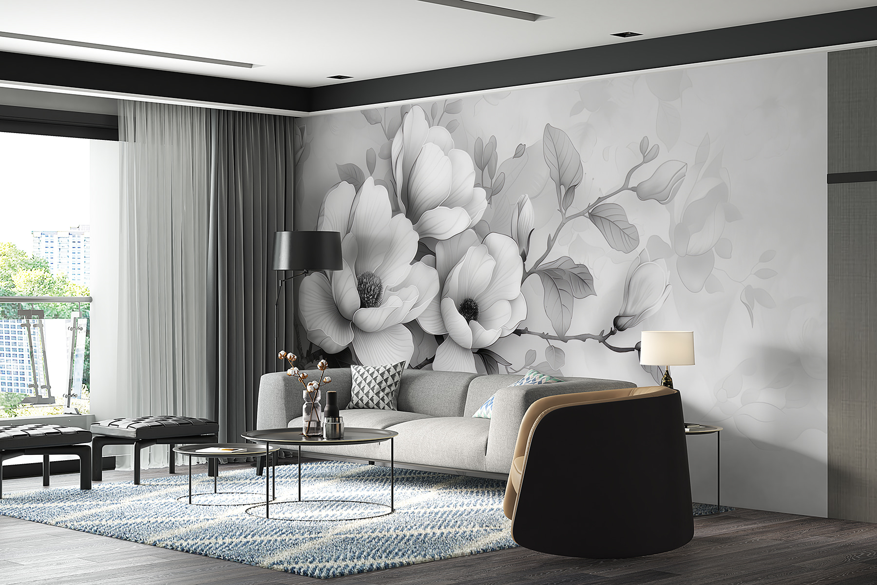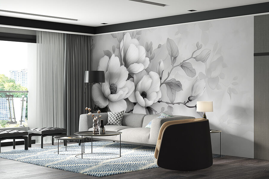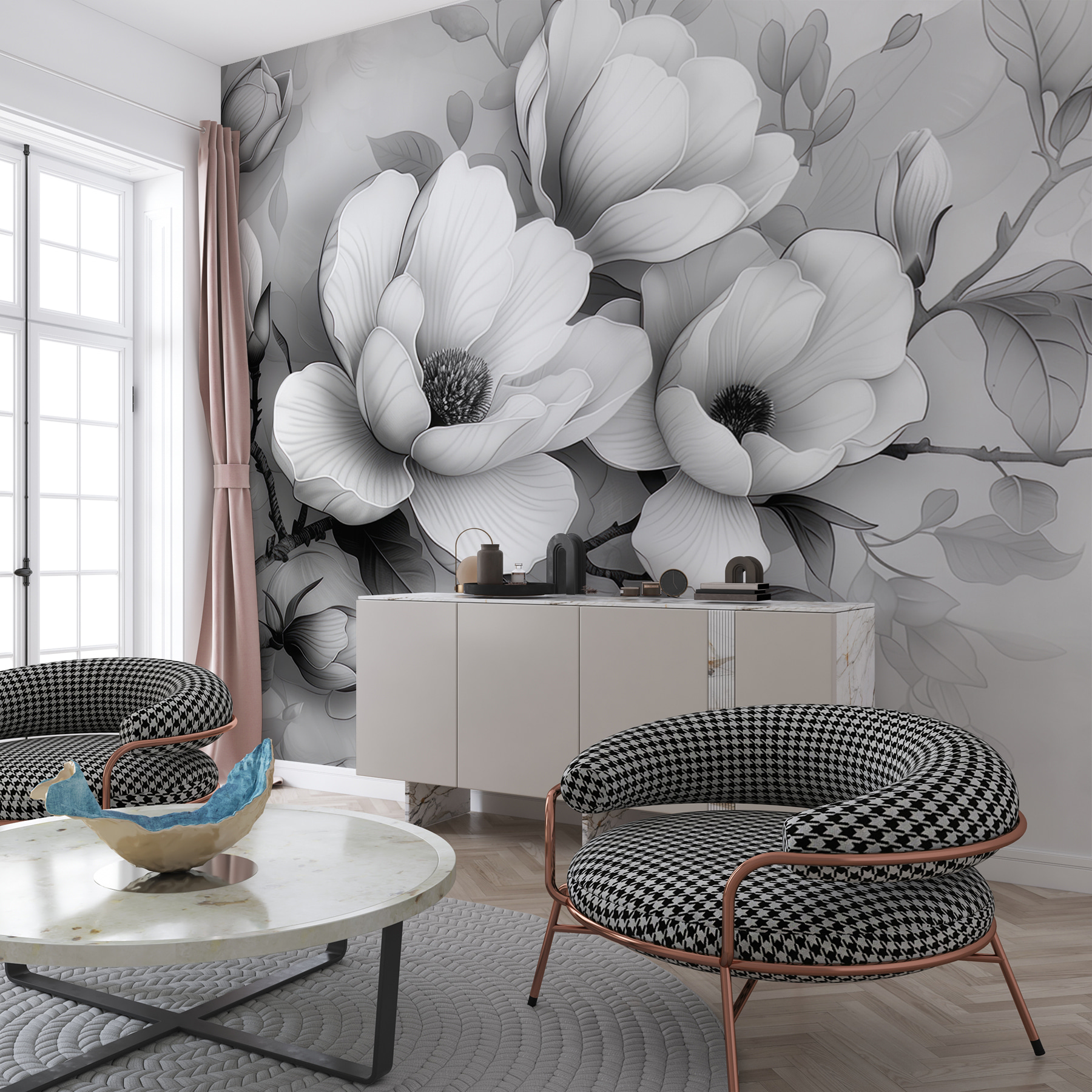 Verwandeln Sie jeden Raum mit dieser atemberaubenden Fototapete “Monochrome Bloom in Serene Elegance”. Stellen Sie sich einen friedlichen Morgen vor, das Licht strömt herein, und diese zarten Blumen schmücken sanft Ihre Wand. Das kühne und doch sanfte Design schafft mühelos ein Gleichgewicht zwischen Raffinesse und der Schönheit der Natur. Es ist, als würde man einen ruhigen Garten in sein Zuhause einladen, perfekt zum Träumen oder für gemütliche Gespräche. Ob in einem schicken Wohnzimmer oder in einer ruhigen Ecke im Schlafzimmer, dieses Wandbild vermittelt Eleganz, ohne zu schreien. Es ist eine charmante Note, die einen innehalten, durchatmen und die Kunst der Einfachheit schätzen lässt. Stellen Sie sich vor, wie Sie in der Nähe einen Kaffee schlürfen und die ruhige Stimmung auf sich wirken lassen.