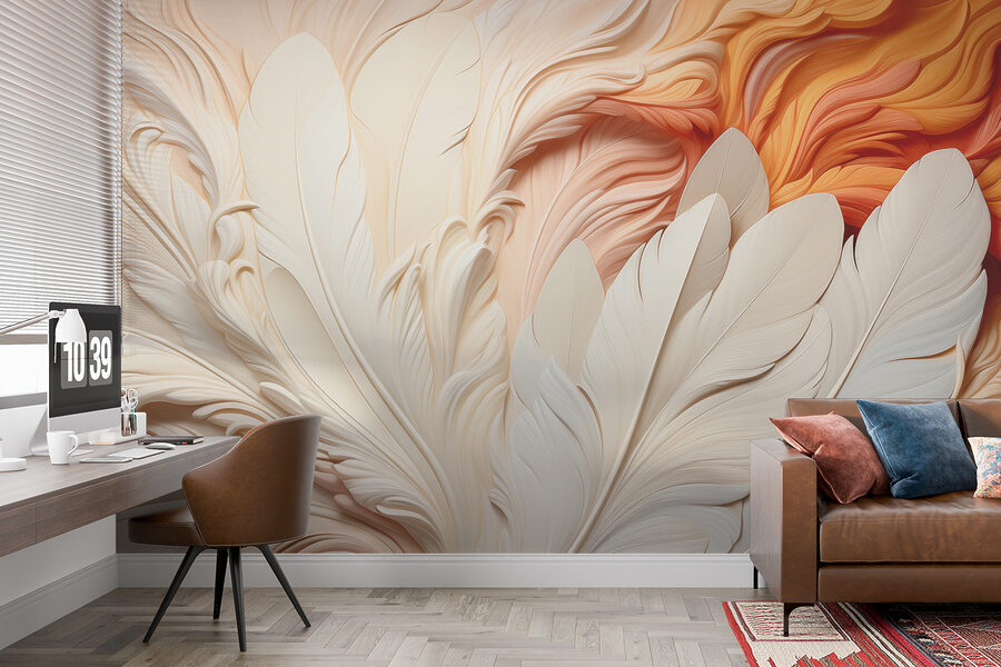 Darf ich vorstellen: “Fototapeten w01301” – ein atemberaubendes Kunstwerk, das elegante, federleichte Stimmung versprüht! Stellen Sie sich vor, Sie betreten einen Raum mit diesen weichen, wirbelnden Federn, die sich über Ihre Wand ausbreiten. Es ist nicht nur ein Wandbild, es ist eine ganze Stimmung. Das cremige Weiß vermischt sich mit den warmen Orangetönen… es ist wie ein gemütlicher Sonnenuntergang, der Ihren Raum umhüllt. Perfekt, um einen Hauch von 3D-Magie in jeden Raum zu bringen.