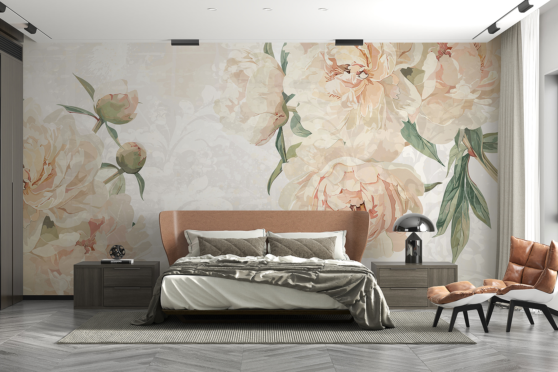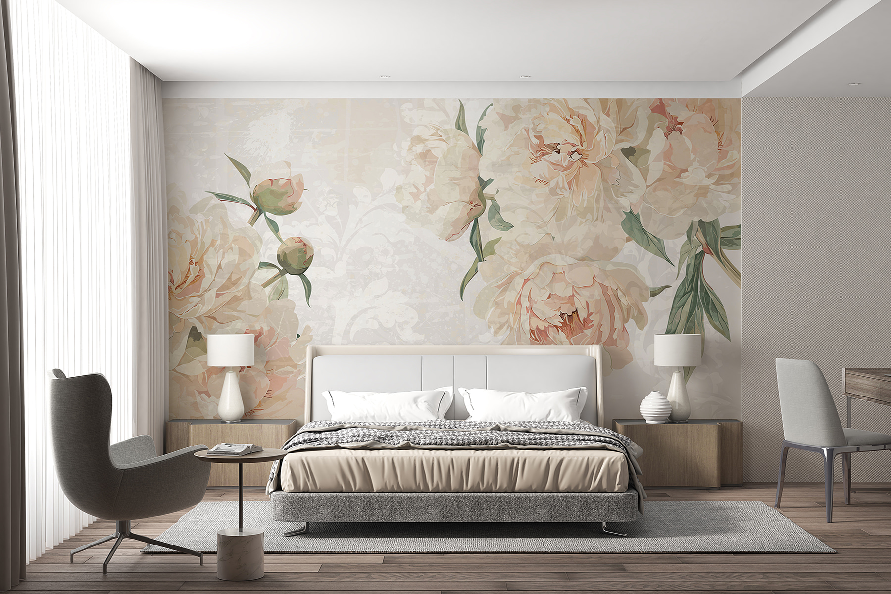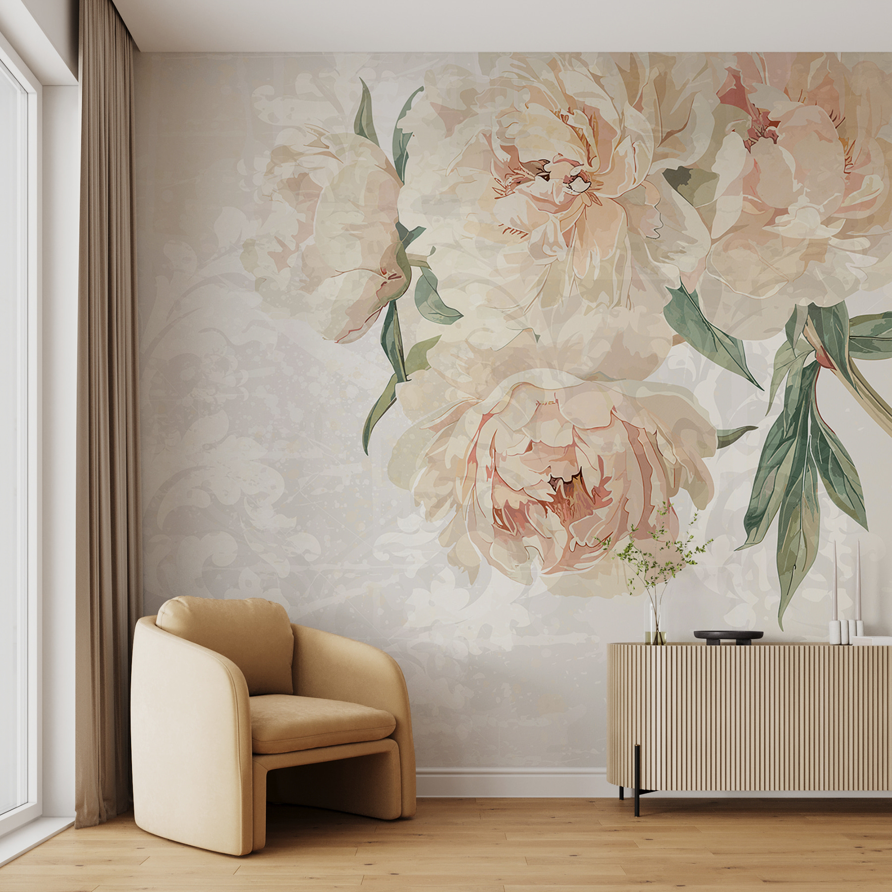 Fototapeten Blühende Pfingstrosen unter sanftem Licht