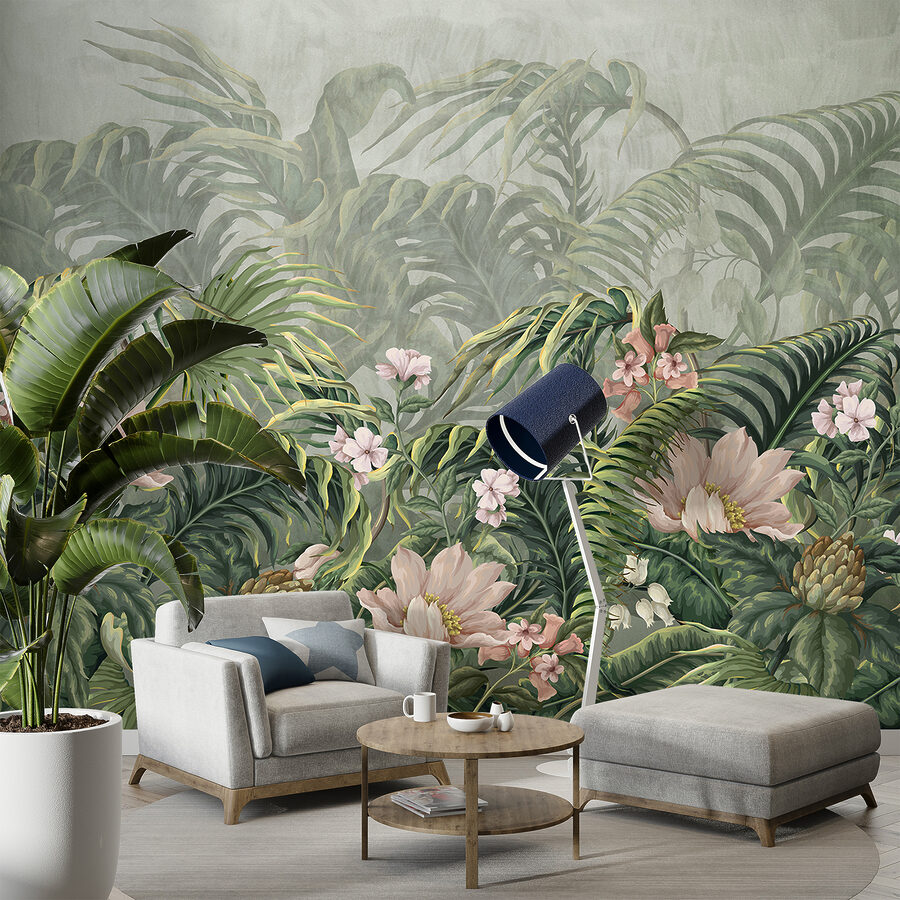 Stell dir vor, du betrittst einen Raum und fühlst dich direkt in einen üppigen, zauberhaften Dschungel versetzt – ziemlich cool, oder? Genau darum geht es bei den “Fototapeten w01309”. Mit lebendigen, detaillierten Palmenblättern und tropischen Blüten bringt dieses Wandbild die beruhigende Stimmung der Natur ins Haus. Stellen Sie es sich in Ihrem Wohnzimmer vor und verwandeln Sie Ihren Raum in einen exotischen Rückzugsort. Plötzlich fühlt sich der Morgenkaffee an, als würden Sie ihn in einem tropischen Paradies schlürfen, mit Vogelgezwitscher und allem drum und dran! Perfekt für alle, die sich nach einem Hauch von Wärme und Grün sehnen, ohne sich um den Unterhalt zu kümmern. Ob es nun die knalligen rosa Blüten oder das tiefe Grün der Blätter sind, dieses Kunstwerk bringt Frische und Ruhe in jede Umgebung. Es ist wie ein eigenes Kunstwerk der Natur – direkt an Ihrer Wand!