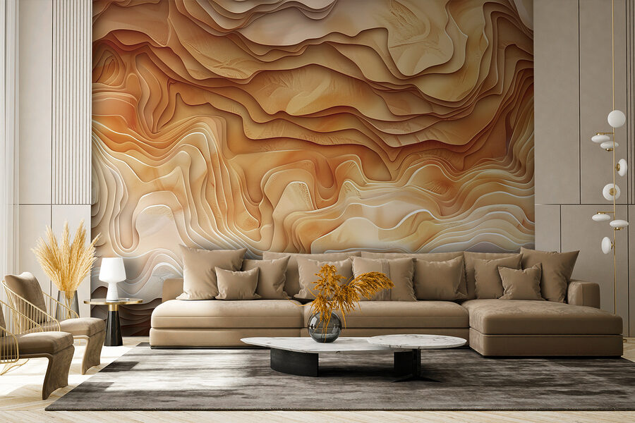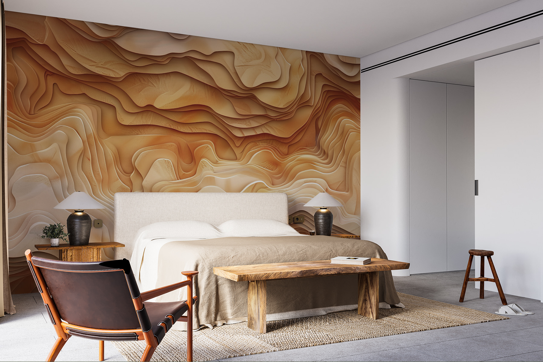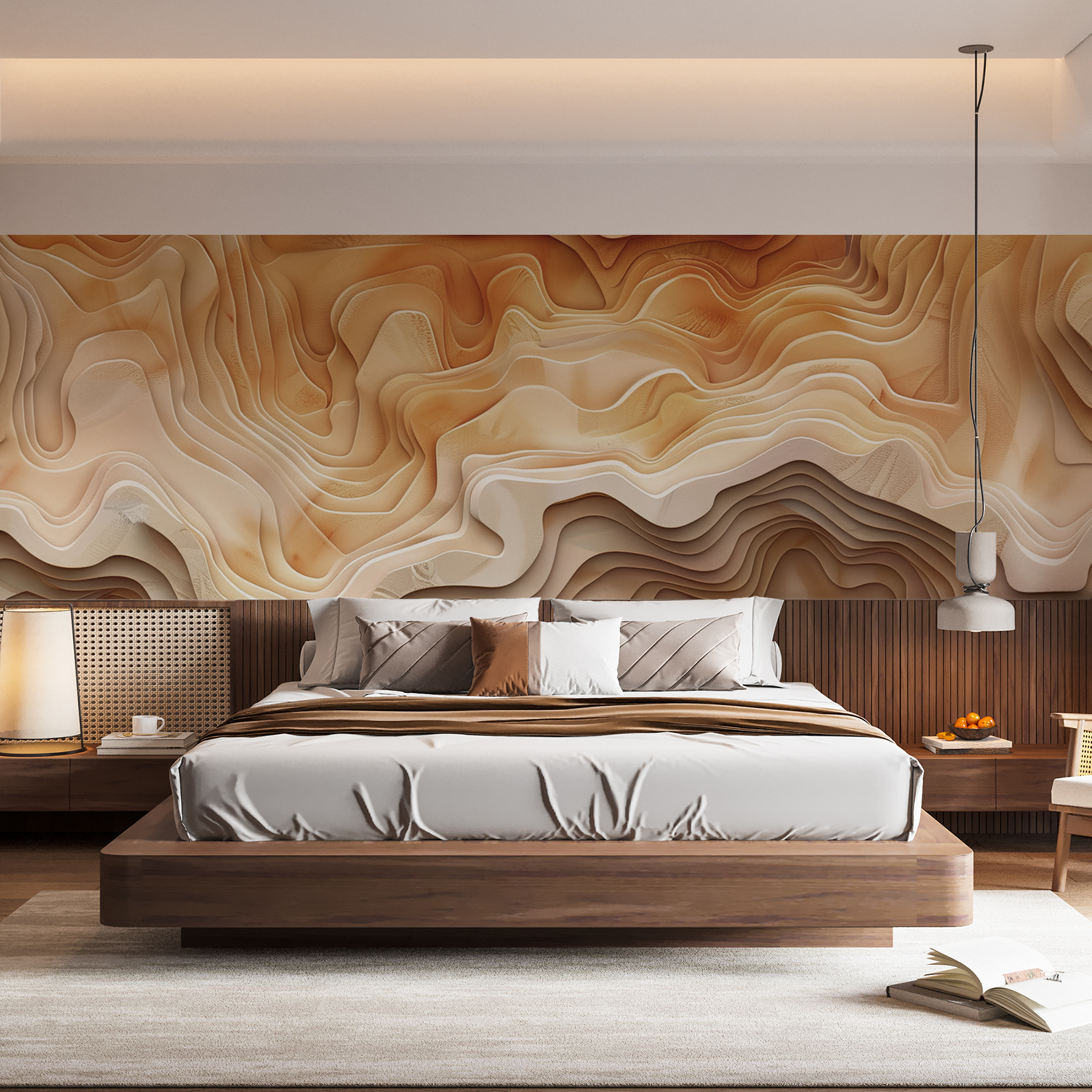 Gestalten Sie Ihre Wände mit der Schönheit der Erdschichten, eingefangen in diesem Wandbild mit abstrakten Wellen in warmen Erdtönen. Stellen Sie sich vor, Sie treten in eine ruhige Umgebung ein, die sich natürlich und einladend anfühlt – perfekt für eine gemütliche Leseecke oder ein lebendiges Wohnzimmer. Dieses Design verleiht Tiefe, ohne die Sinne zu überwältigen. Es ist, als würde man sich ein Stück Natur ins Haus holen. Freunde werden es bewundern und vielleicht sogar fragen, ob Sie heimlich Innenarchitekt geworden sind. Warum lassen Sie Ihren Raum nicht eine Geschichte erzählen? Es ist an der Zeit, sich von langweiligen Wänden zu verabschieden und eine Atmosphäre zu schaffen, die wie für Sie geschaffen ist.